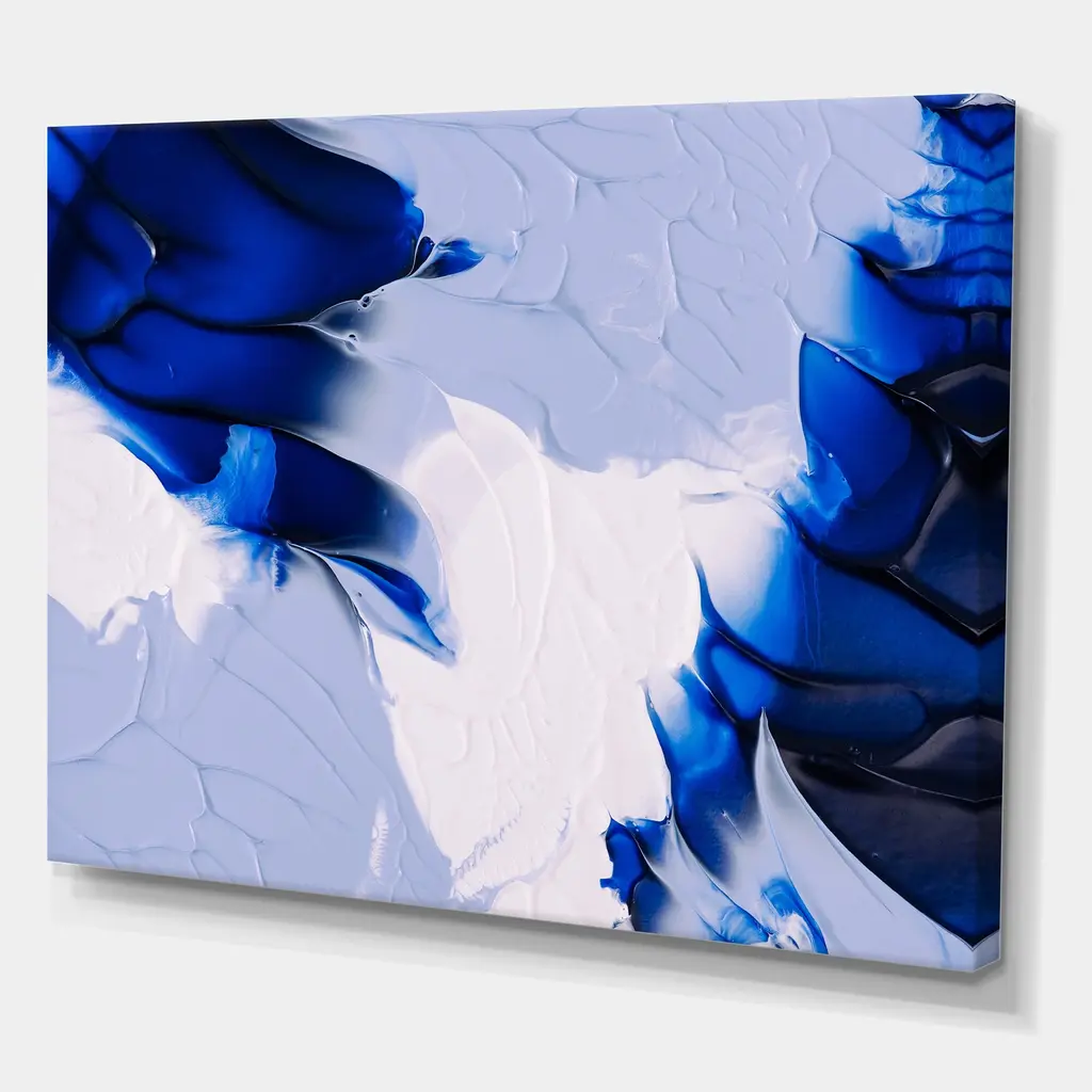 Designart "Abstract Blue Grey And White Waves" Modern Canvas Wall Art Print - 32 In. Wide X 16 In. High