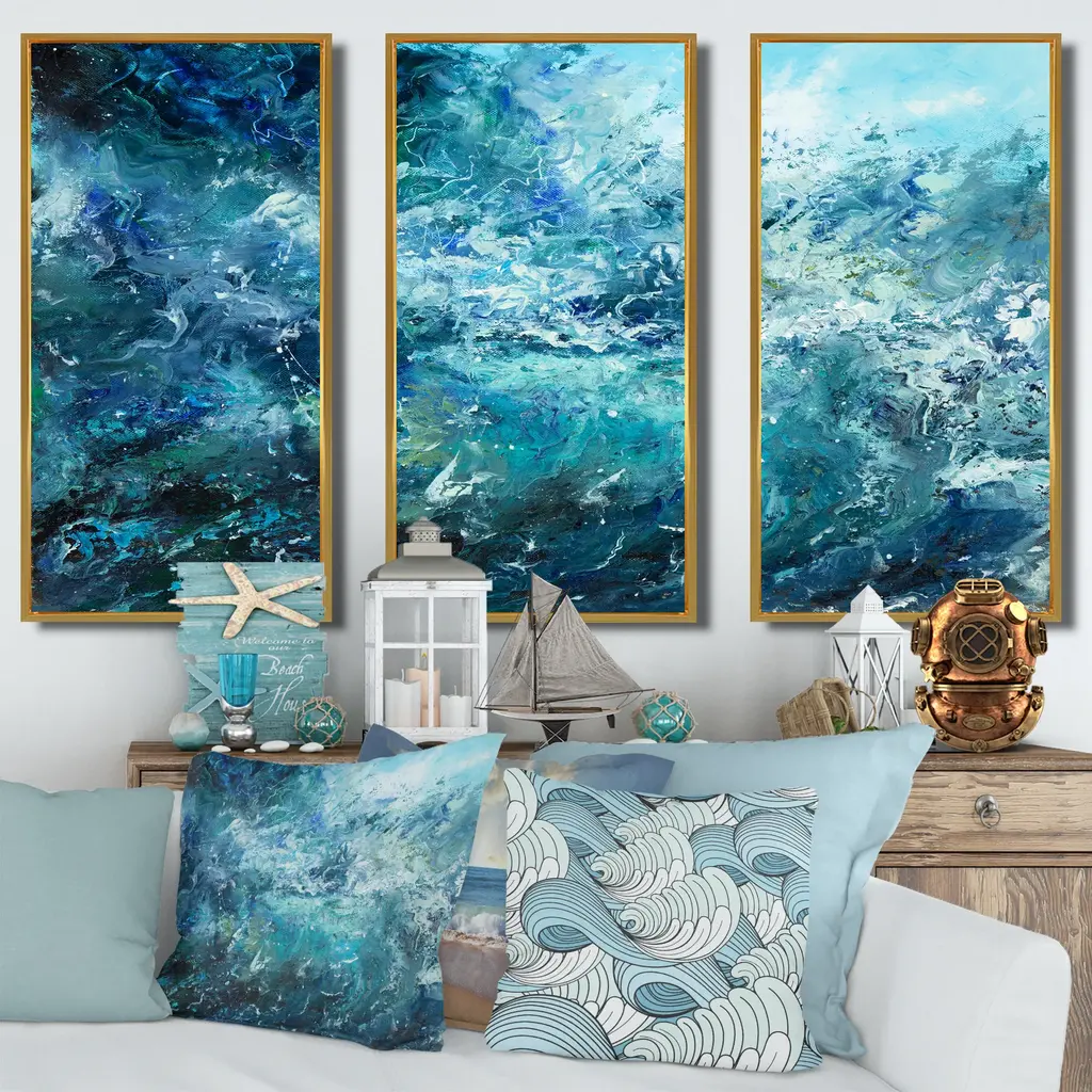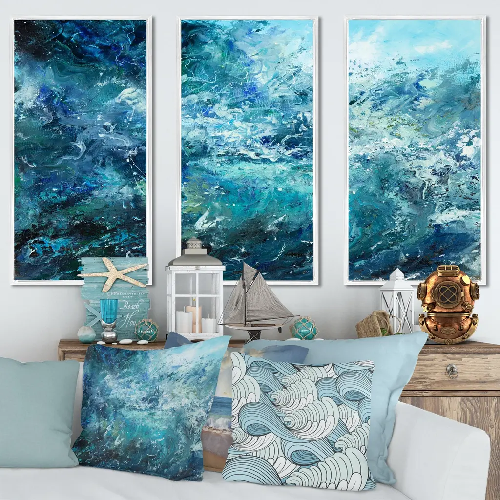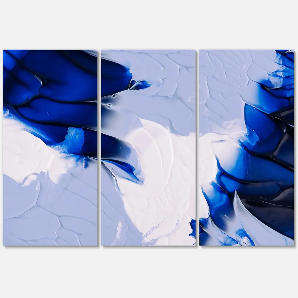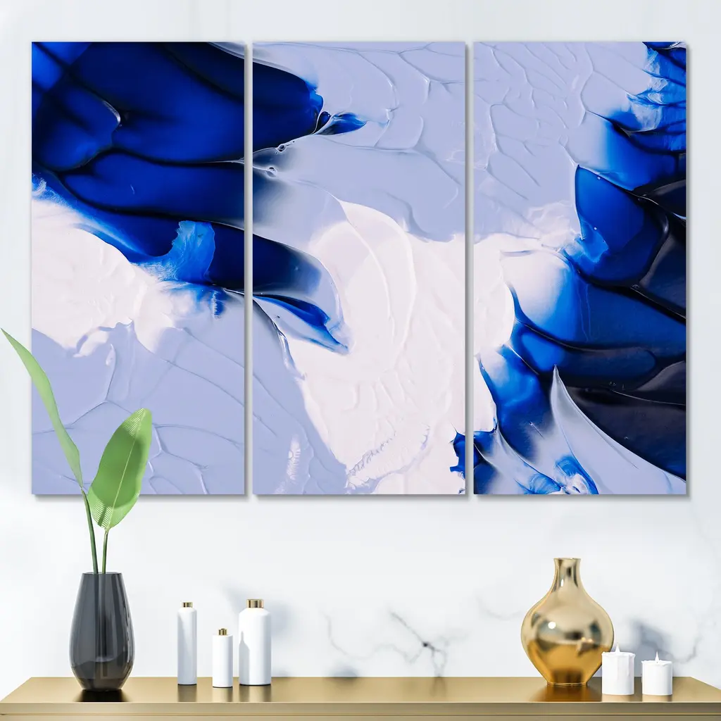 Designart "Abstract Blue Grey And White Waves" Modern Canvas Wall Art Print - 36 In. Wide X 28 In. High - 3 Panels