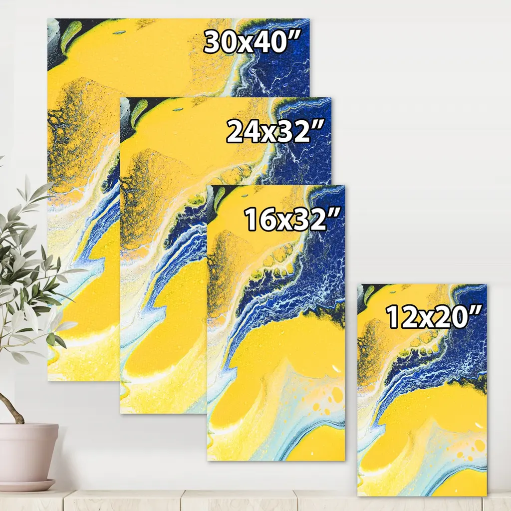 Designart "Abstract Composition In Yellow And Blue Vii" Modern Canvas Wall Art Print - 30 In. Wide X 40 In. High