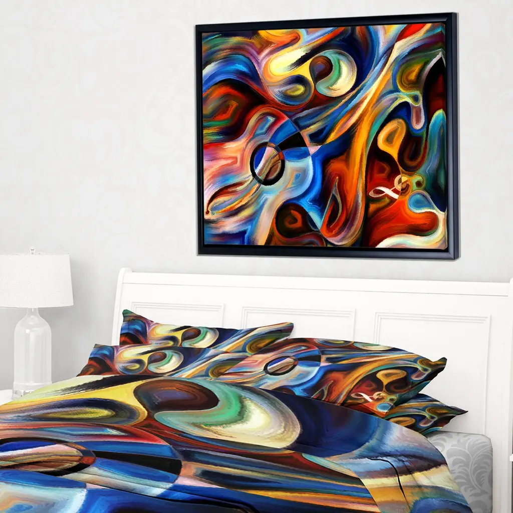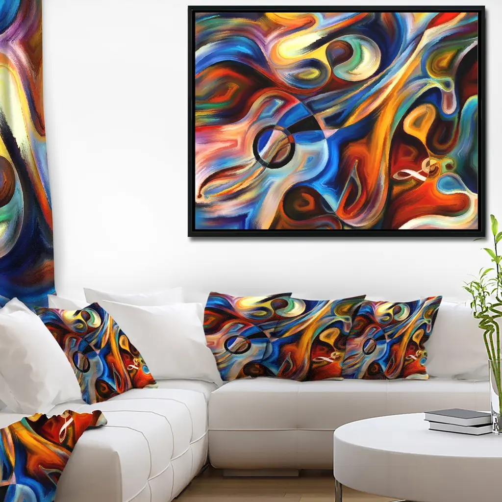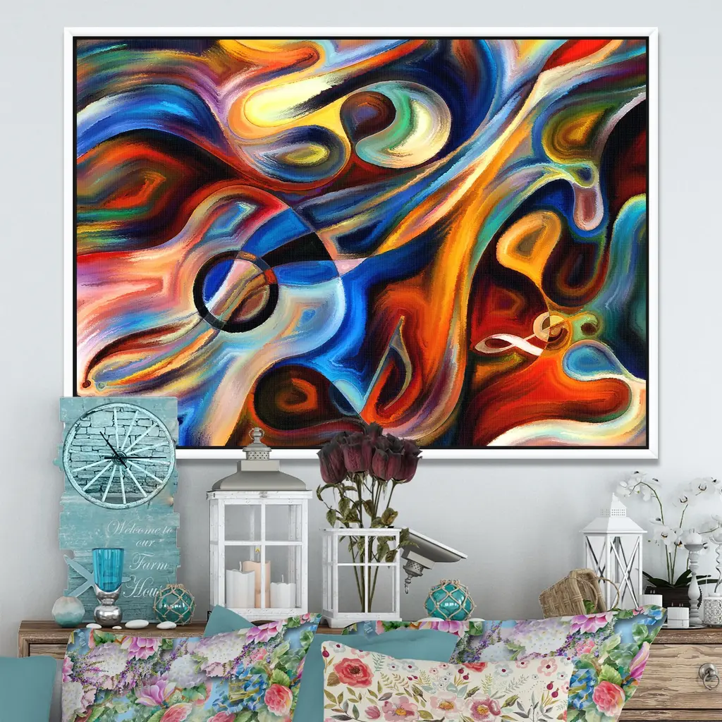 Splash some colorful and bold artwork on your walls with this print from Designart. The abstract instrument and sheet music elements show your appreciation of music, while the wood floating frame offers extra protection. The giclee printing design stretched over canvas ensures this artwork is rugged.
