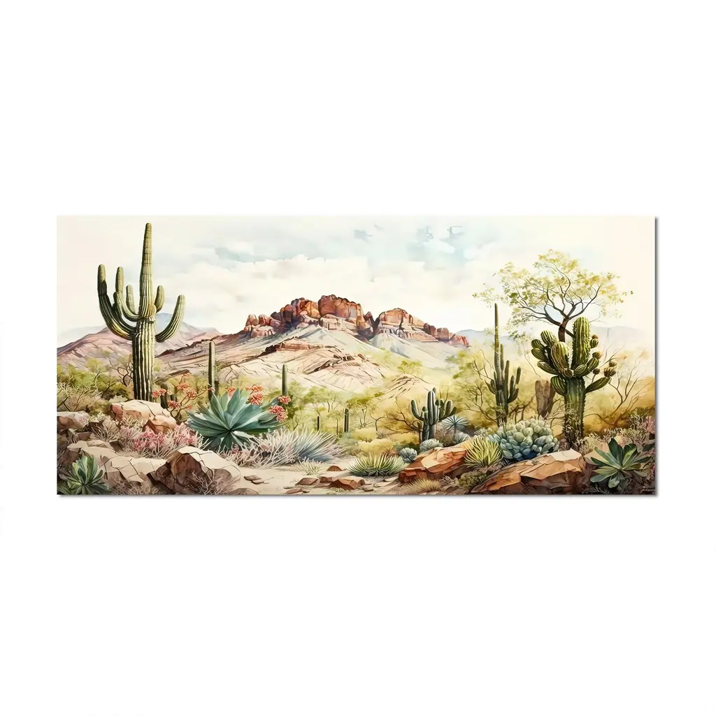This beautiful Arizona Desert II Canvas Art is printed using the highest quality fade resistant ink on canvas. Every one of our fine art giclee canvas prints is printed on premium quality cotton canvas, using the finest quality inks which will not fade over time. Each giclee print is stretched tightly over a 1 inch wood sub frame for small size prints or a 1.5 inch wood sub frame for large size prints (40x30 60x28 ...) ensuring the canvas is taught and does not buckle. This canvas art print is gallery-wrapped (the design continues on the sides) , giving it a real art gallery feel. All of our canvas prints are carefully packaged with plastic protection, fragile labeling and sturdy boxes to ensure a safe delivery. Every canvas print arrives ready to hang on the wall, with the hanging kits included. - Style : Modern & Contemporary - Subject : Landscapes - Color : Green - This canvas giclee print is gallery-wrapped (the design continues on the sides) , giving it a real art gallery feel. - Premium quality cotton canvas. - Arrives ready to hang on the wall - Easy to Hang