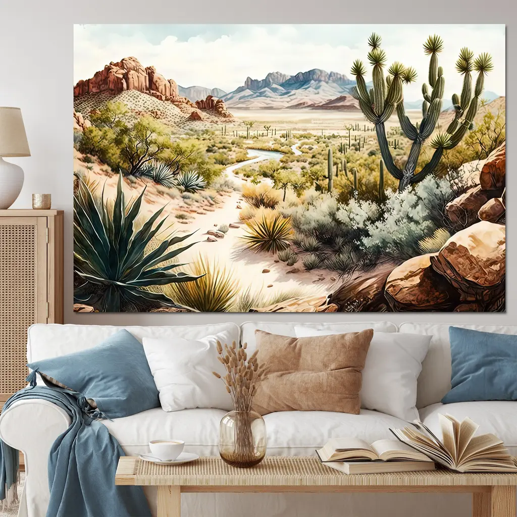 This beautiful Arizona Desert II Canvas Art is printed using the highest quality fade resistant ink on canvas. Every one of our fine art giclee canvas prints is printed on premium quality cotton canvas, using the finest quality inks which will not fade over time. Each giclee print is stretched tightly over a 1 inch wood sub frame for small size prints or a 1.5 inch wood sub frame for large size prints (40x30 60x28 ...) ensuring the canvas is taught and does not buckle. This canvas art print is gallery-wrapped (the design continues on the sides) , giving it a real art gallery feel. All of our canvas prints are carefully packaged with plastic protection, fragile labeling and sturdy boxes to ensure a safe delivery. Every canvas print arrives ready to hang on the wall, with the hanging kits included. - Style : Modern & Contemporary - Subject : Landscapes - Color : Green - This canvas giclee print is gallery-wrapped (the design continues on the sides) , giving it a real art gallery feel. - Premium quality cotton canvas. - Arrives ready to hang on the wall - Easy to Hang