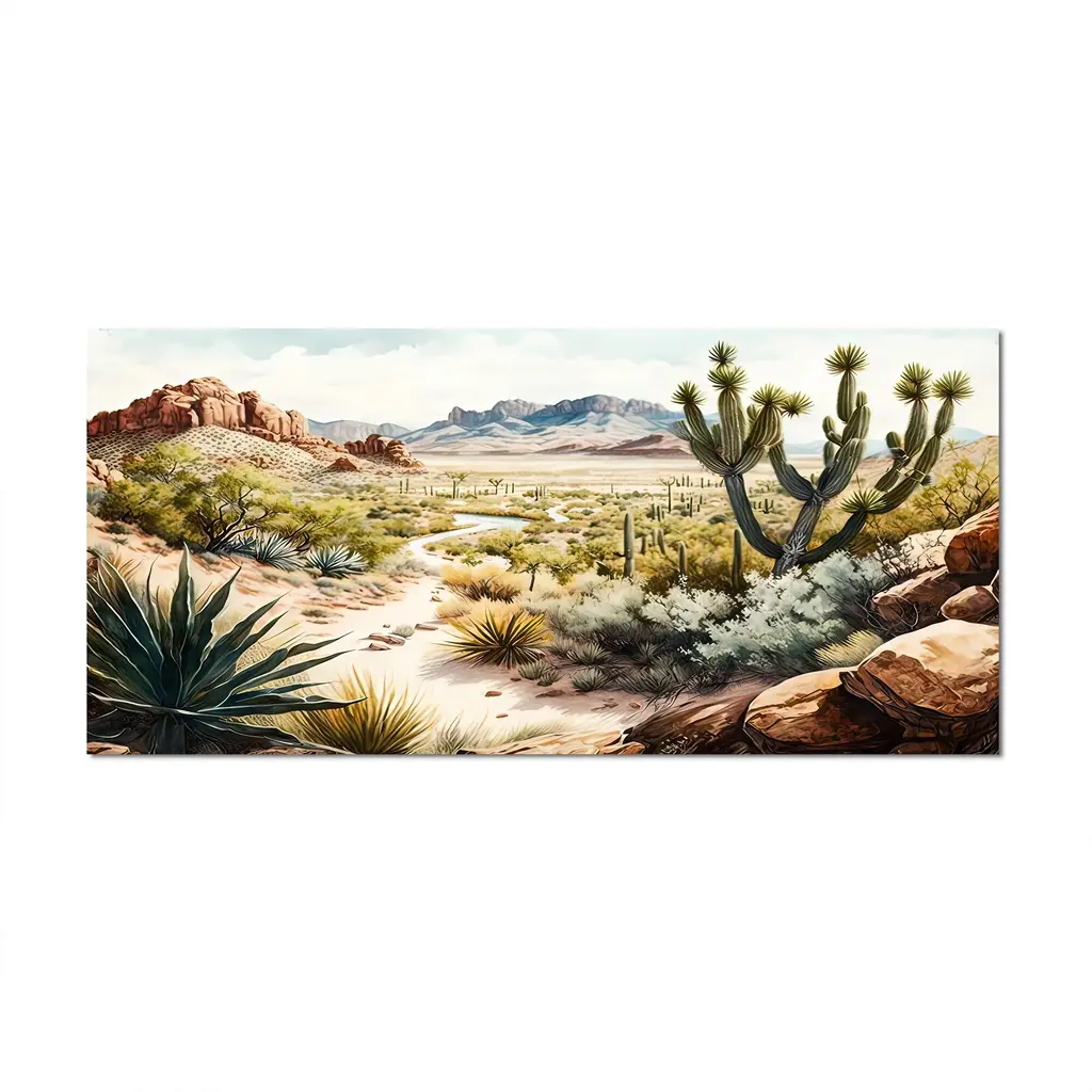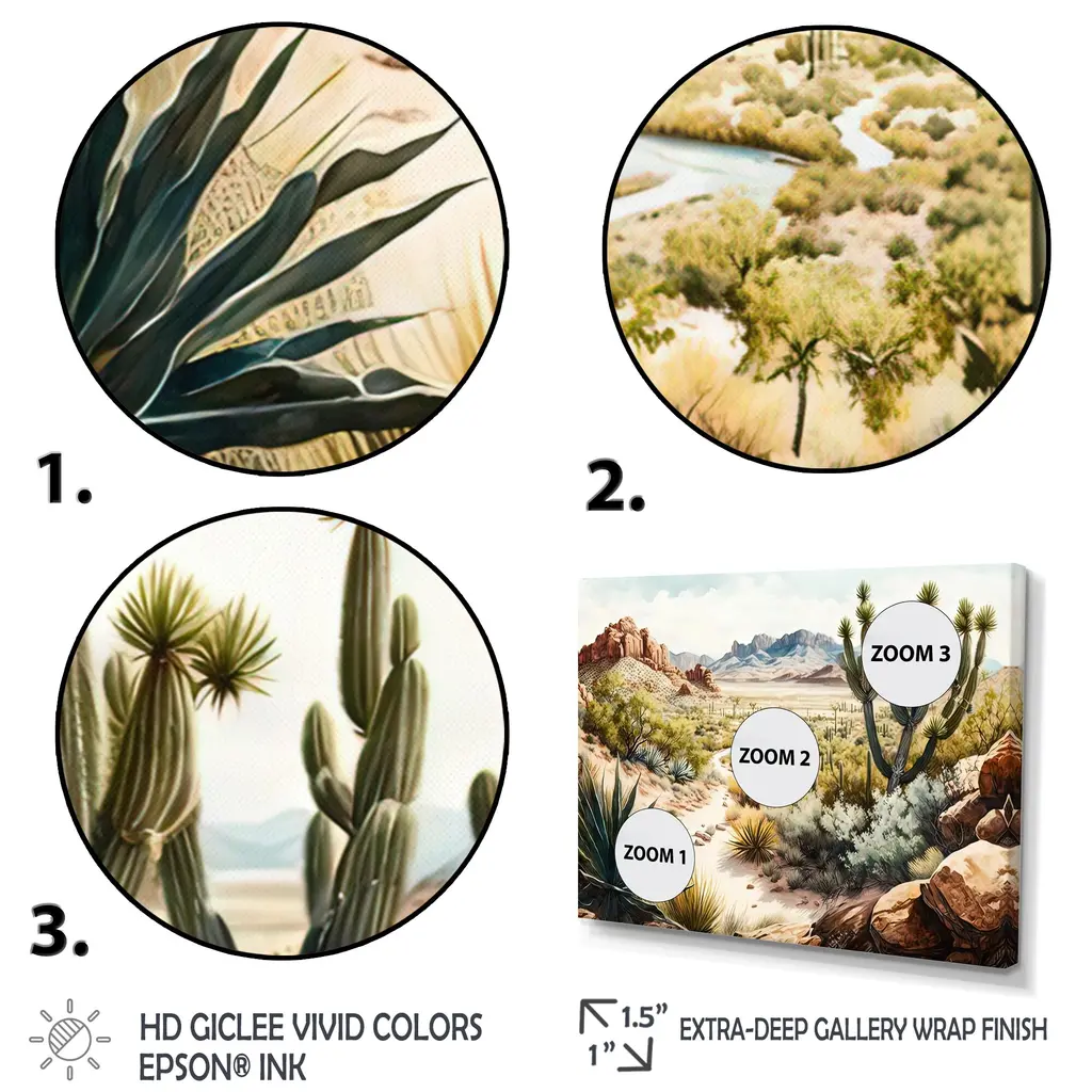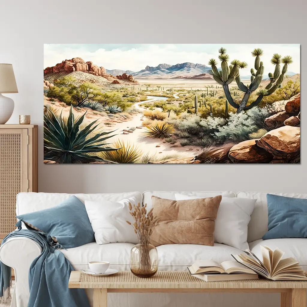 This beautiful Arizona Desert II Canvas Art is printed using the highest quality fade resistant ink on canvas. Every one of our fine art giclee canvas prints is printed on premium quality cotton canvas, using the finest quality inks which will not fade over time. Each giclee print is stretched tightly over a 1 inch wood sub frame for small size prints or a 1.5 inch wood sub frame for large size prints (40x30 60x28 ...) ensuring the canvas is taught and does not buckle. This canvas art print is gallery-wrapped (the design continues on the sides) , giving it a real art gallery feel. All of our canvas prints are carefully packaged with plastic protection, fragile labeling and sturdy boxes to ensure a safe delivery. Every canvas print arrives ready to hang on the wall, with the hanging kits included. - Style : Modern & Contemporary - Subject : Landscapes - Color : Green - This canvas giclee print is gallery-wrapped (the design continues on the sides) , giving it a real art gallery feel. - Premium quality cotton canvas. - Arrives ready to hang on the wall - Easy to Hang