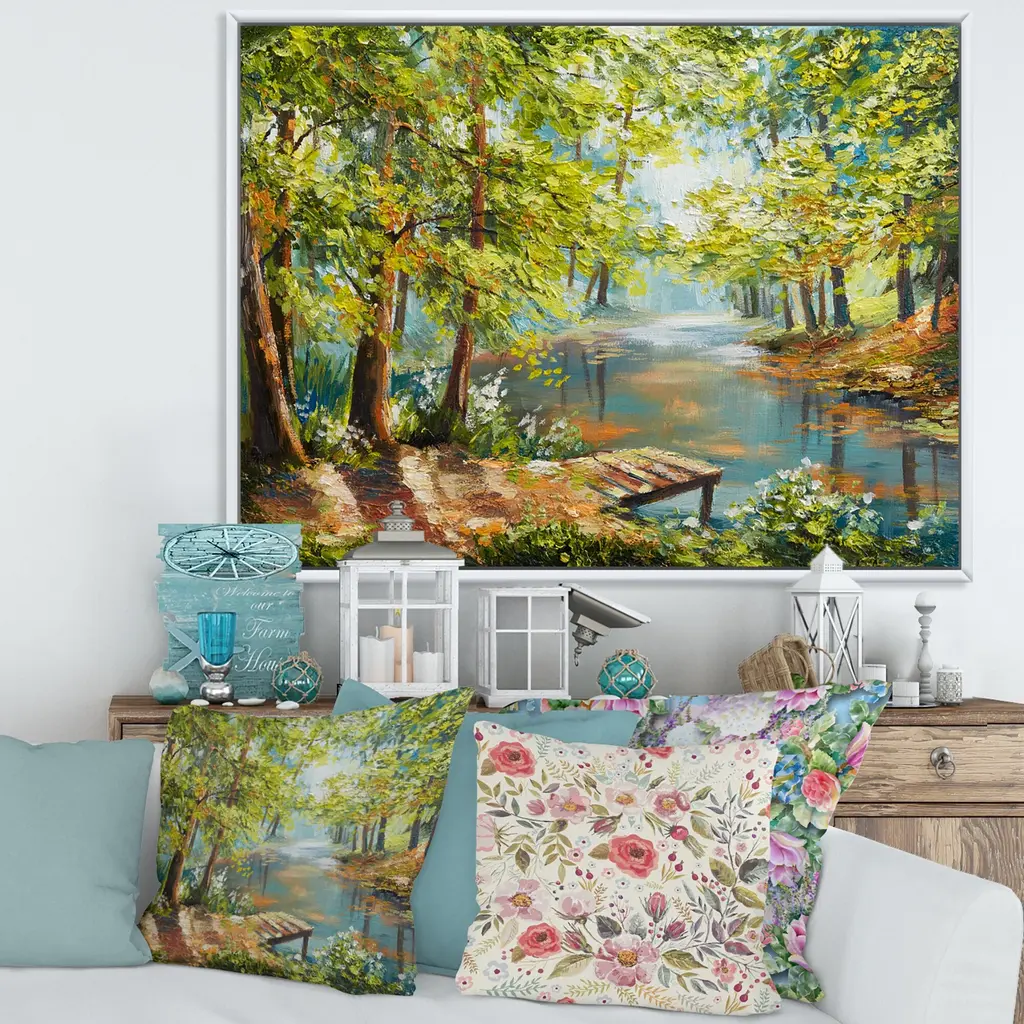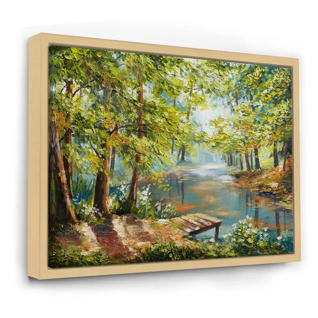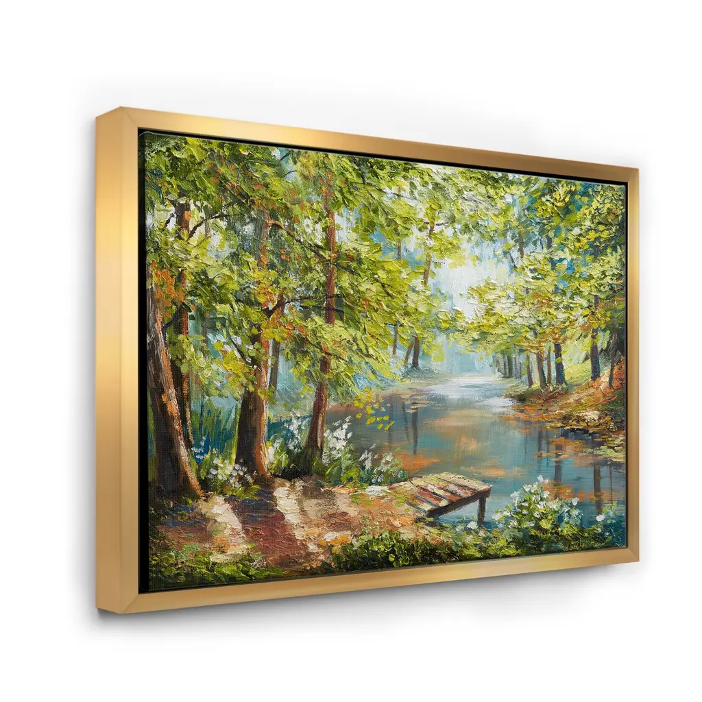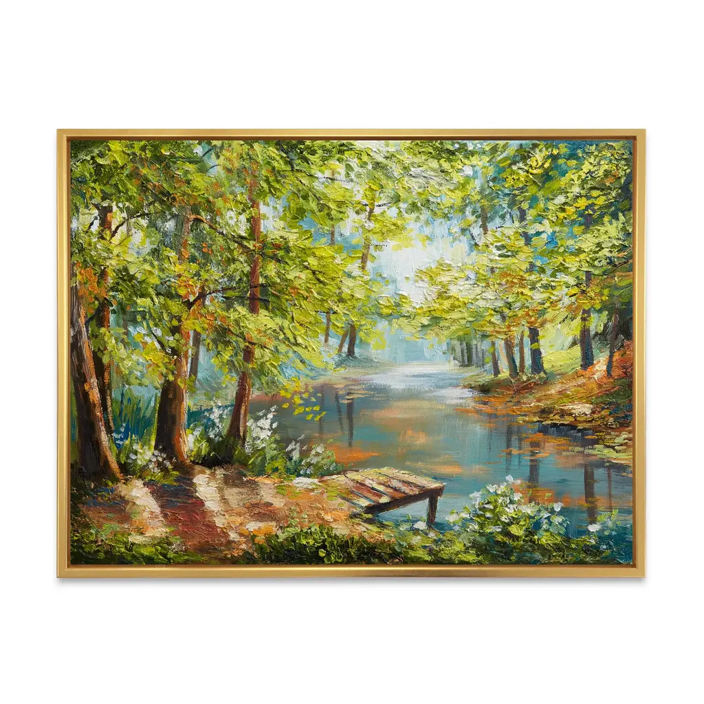 This beautiful Autumn Forest With Meandering River Framed Canvas Art is printed using the highest quality fade-resistant ink on canvas. Every one of our fine art giclee canvas prints is printed on premium quality canvas, using the finest quality inks which will not fade over time. Each giclee print is stretched tightly over a 1-inch wood sub frame ensuring the canvas is taught and does not buckle. The canvas print is inserted into a wood floating frame. All of our Framed canvas prints are carefully packaged with corner protection, fragile labeling and sturdy boxes to ensure safe delivery. Every canvas print arrives ready to hang on the wall, with the hanging kits included. Features: - Style : Lake House - Subject : Landscapes, Country Charm - Color : Green - Premium quality cotton canvas. - Arrives ready to hang on the wall - Easy to Hang