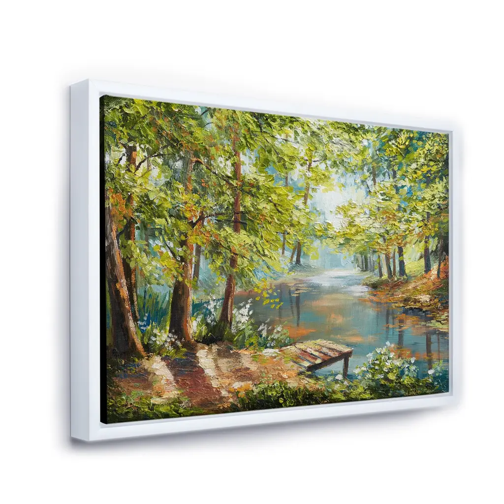 This beautiful Autumn Forest With Meandering River Framed Canvas Art is printed using the highest quality fade-resistant ink on canvas. Every one of our fine art giclee canvas prints is printed on premium quality canvas, using the finest quality inks which will not fade over time. Each giclee print is stretched tightly over a 1-inch wood sub frame ensuring the canvas is taught and does not buckle. The canvas print is inserted into a wood floating frame. All of our Framed canvas prints are carefully packaged with corner protection, fragile labeling and sturdy boxes to ensure safe delivery. Every canvas print arrives ready to hang on the wall, with the hanging kits included. Features: - Style : Lake House - Subject : Landscapes, Country Charm - Color : Green - Premium quality cotton canvas. - Arrives ready to hang on the wall - Easy to Hang