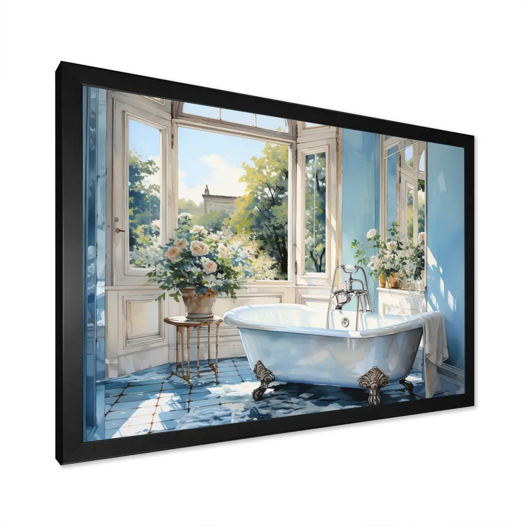 This beautiful "Bathroom Tranquil Reflections I" Framed wall Art is printed using the highest quality fade-resistant ink on canvas. Every one of our Humor Wall art printed on premium quality cotton canvas, Each Bohemian & Eclectic Canvas print is stretched tightly over a 1-inch wood sub frame for small size prints or a 1.5-inch wood sub frame for large size prints (40x30 44x34 ...) ensuring the canvas is taught and does not buckle. All of our Framed Canvas Prints are carefully packaged with corner protection, fragile labeling and sturdy boxes to ensure safe delivery. Every framed canvas print arrives ready to hang on the wall, with the hanging kits included. This framed art print is available in many different color frames. Features: - Style : Bohemian & Eclectic, Modern & Contemporary - Subject : Humor - Color : Blue; White - Premium quality cotton canvas. - Arrives ready to hang on the wall - Frame Tickness : 1 inch - Frame Width : 1.5 inch Wide - Easy to Hang