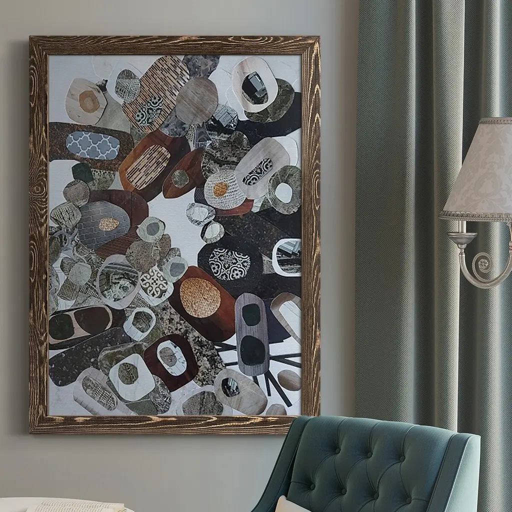 This beautiful "Beige And Brown African River Collage" Framed wall Art is printed using the highest quality fade resistant ink on canvas. Every one of our Abstract Framed Wall art printed on premium quality cotton canvas, Each Modern & Contemporary Framed Canvas print is stretched tightly over a 1-inch wood sub frame and inserted into a 1.5 Frame. All of our Framed Canvas Prints are carefully packaged with corner protection, fragile labeling and sturdy boxes to ensure safe delivery. Every framed canvas print arrives ready to hang on the wall, with the hanging kits included. This framed art print is available in many different color frames. Features: - Style : Modern & Contemporary; Transitional Framed Canvas - Subject : Abstract Shapes Wall Art - Color : Beige; Brown - Premium quality cotton canvas. - Arrives ready to hang on the wall. - Frame Tickness : 1 inch - Frame Width : 1.5 inch Wide - Easy to Hang