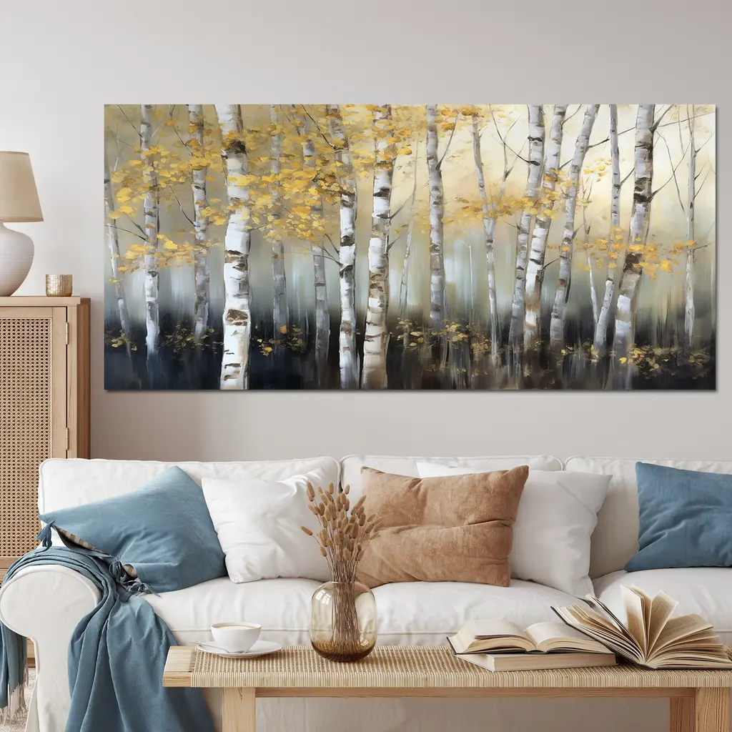 This beautiful Birch Tree Dense Forest I Canvas Art is printed using the highest quality fade resistant ink on canvas. Every one of our fine art giclee canvas prints is printed on premium quality cotton canvas, using the finest quality inks which will not fade over time. Each giclee print is stretched tightly over a 1 inch wood sub frame for small size prints or a 1.5 inch wood sub frame for large size prints (40x30 60x28 ...) ensuring the canvas is taught and does not buckle. This canvas art print is gallery-wrapped (the design continues on the sides) , giving it a real art gallery feel. All of our canvas prints are carefully packaged with plastic protection, fragile labeling and sturdy boxes to ensure a safe delivery. Every canvas print arrives ready to hang on the wall, with the hanging kits included. - Style : Modern & Contemporary, Country - Subject : Landscapes, Floral - Color : Grey, Beige - This canvas giclee print is gallery-wrapped (the design continues on the sides) , giving it a real art gallery feel. - Premium quality cotton canvas. - Arrives ready to hang on the wall - Easy to Hang