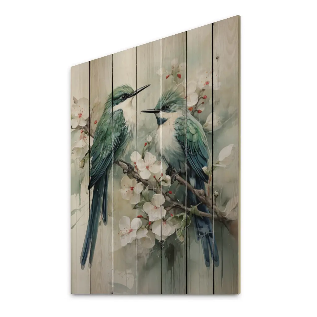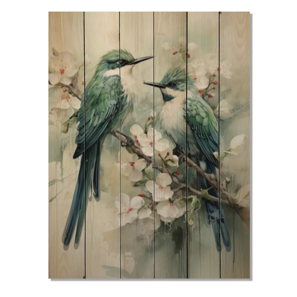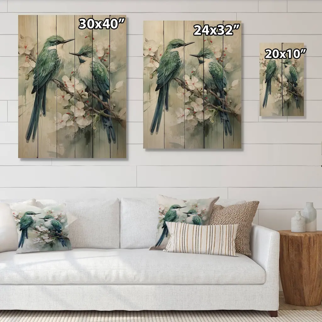 Designart "Bird Serenade Of Feathers I" Animals Print On Natural Pine Wood - 30 In. Wide X 40 In. High