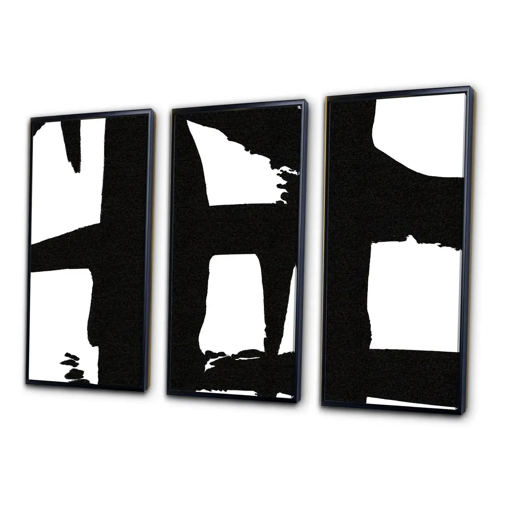 Designart "Black & White Crossing Paths Ii" Mid-Century Modern Framed Canvas Wall Art Set Of 3 - 4 Colors Of Frames - 36 In. Wide X 28 In. High - 3 Panels - Black