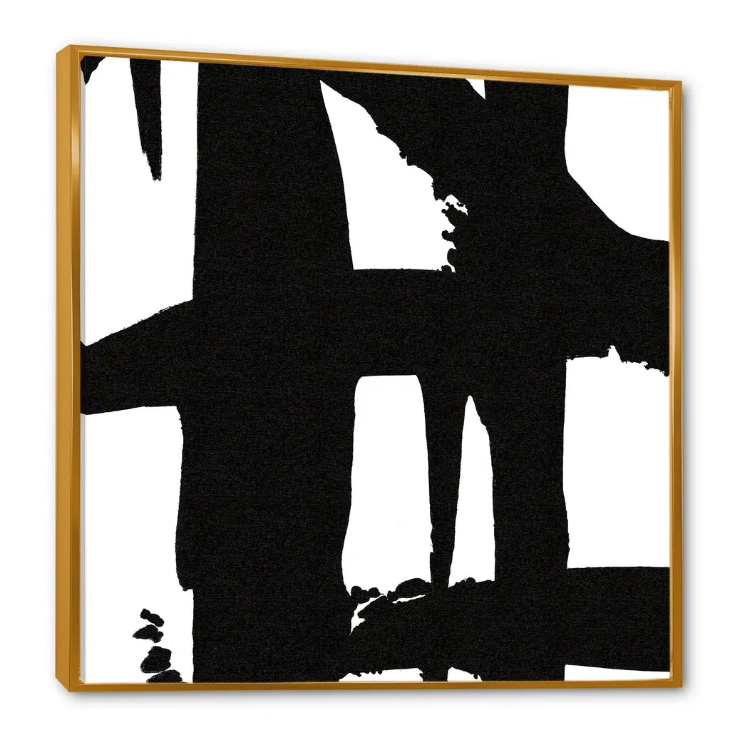 Designart "Black & White Crossing Paths Ii" Modern & Contemporary Framed Canvas - 24 In. Wide X 24 In. High - Gold