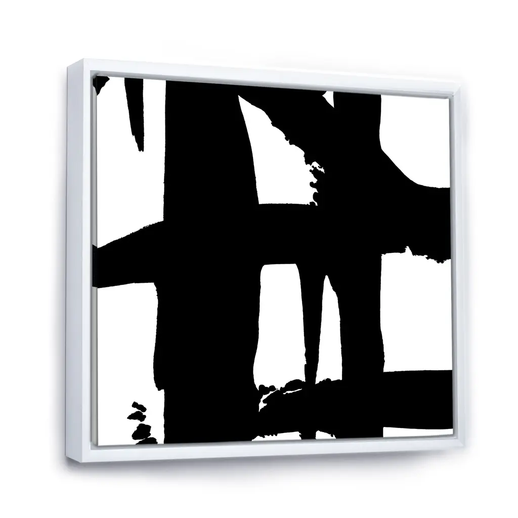 Add a touch of elegance to your home decor with this stunning 'Black & White Crossing Paths II' Framed Canvas Art. This beautiful piece features a captivating abstract design in black and white, printed with fade-resistant ink on premium quality cotton canvas. Stretched over a 1-inch wood sub frame, the canvas is carefully inserted into a wood floating frame for an added touch of sophistication. Plus, it comes with all the necessary hanging kits, making it easy to install and enjoy. Elevate your living space with this modern and contemporary canvas art.Features: