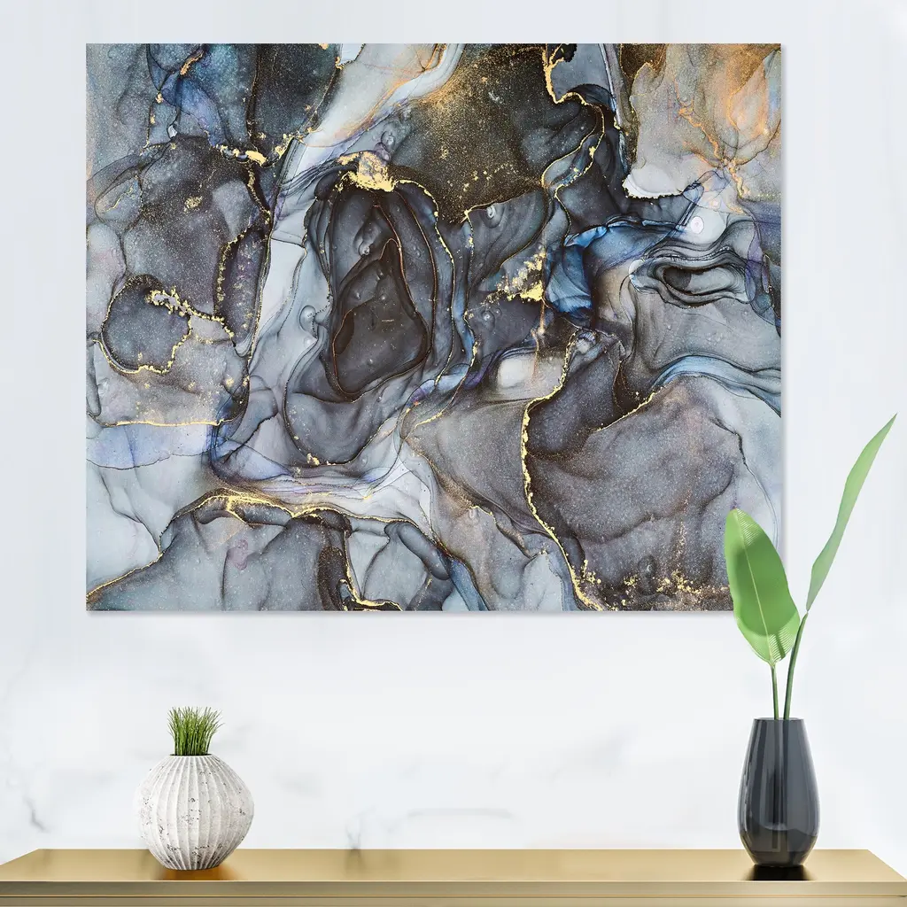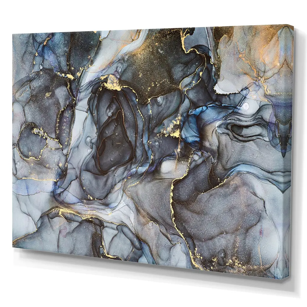 This beautiful Black Gold Infused Liquid Art II Canvas Art is printed using the highest quality fade-resistant ink on canvas. Every one of our fine art giclee canvas prints is printed on premium quality cotton canvas, using the finest quality inks which will not fade over time. Each giclee print is stretched tightly over a 1-inch wood sub frame for small size prints or a 1.5-inch wood subframe for large size prints (40x30 60x28 ...) ensuring the canvas is taught and does not buckle. This canvas art print is gallery-wrapped (the design continues on the sides), giving it a real art gallery feel. All of our canvas prints are carefully packaged with plastic protection, fragile labeling, and sturdy boxes to ensure safe delivery. Every canvas print arrives ready to hang on the wall, with the hanging kits included. - Style : Modern & Contemporary - Subject : Abstract, - Color : Black - This canvas giclee print is gallery-wrapped (the design continues on the sides) , giving it a real art gallery feel. - Premium quality cotton canvas. - Arrives ready to hang on the wall - Easy to Hang