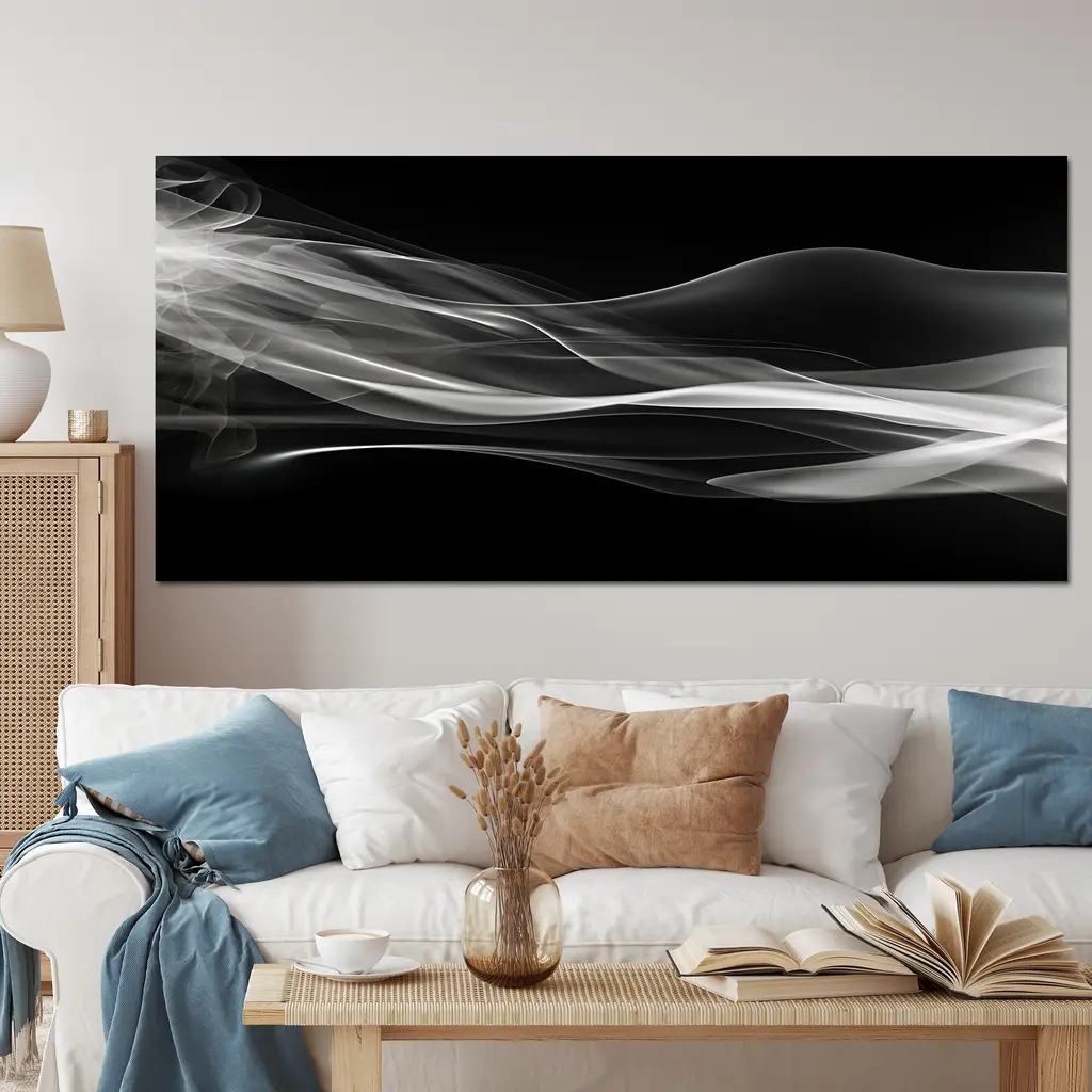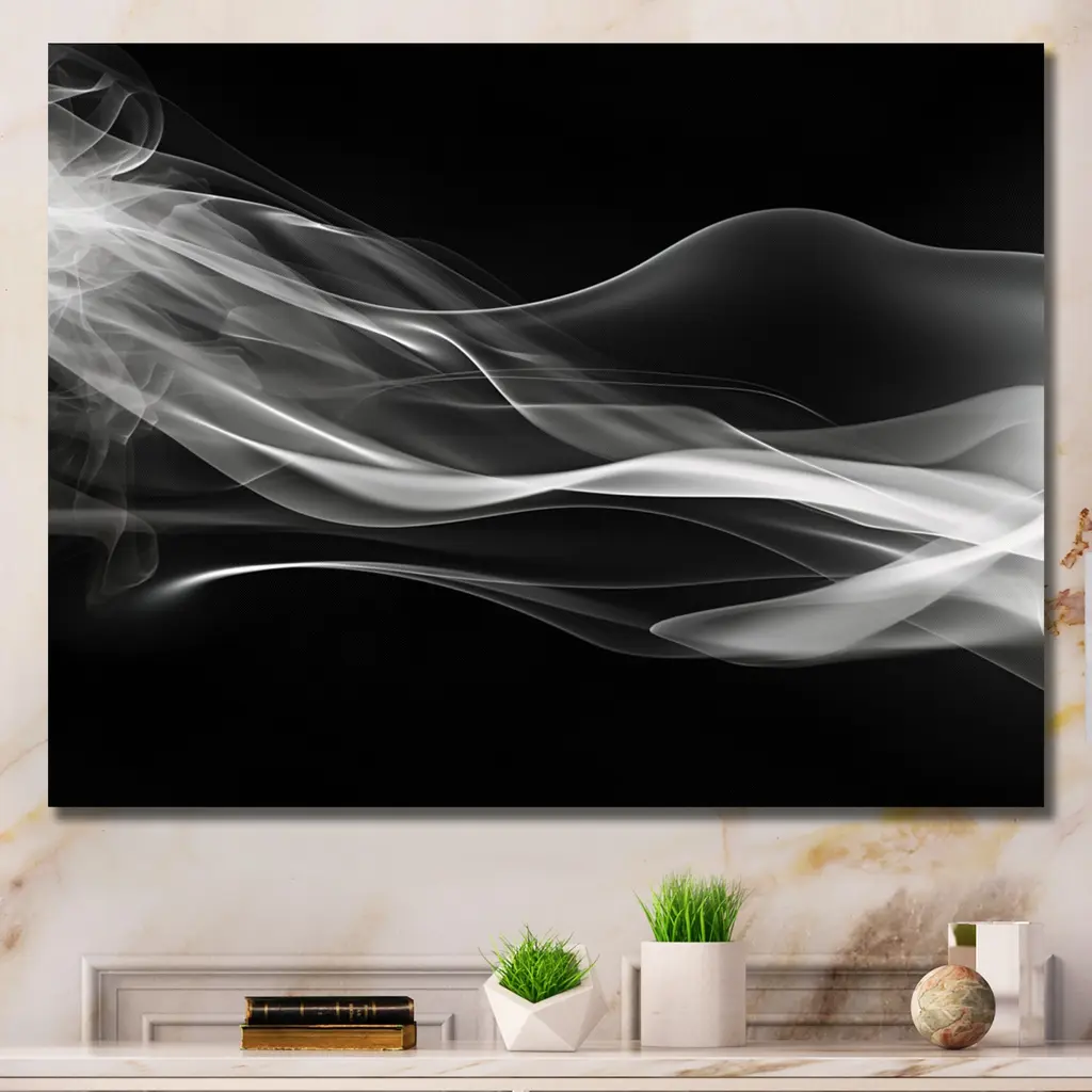 Designart "Black White Contemplative Abstraction I" Modern Waves Canvas Wall Art - 44 In. Wide X 34 In. High