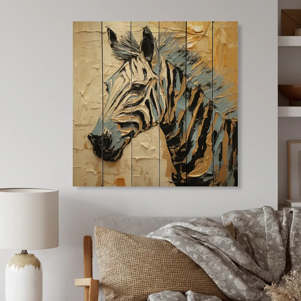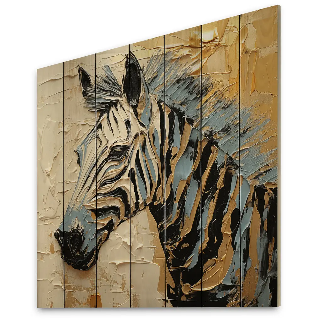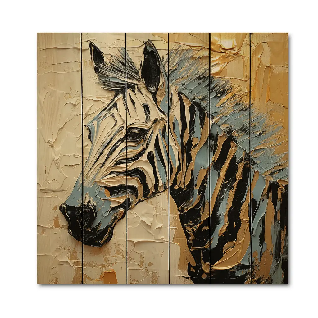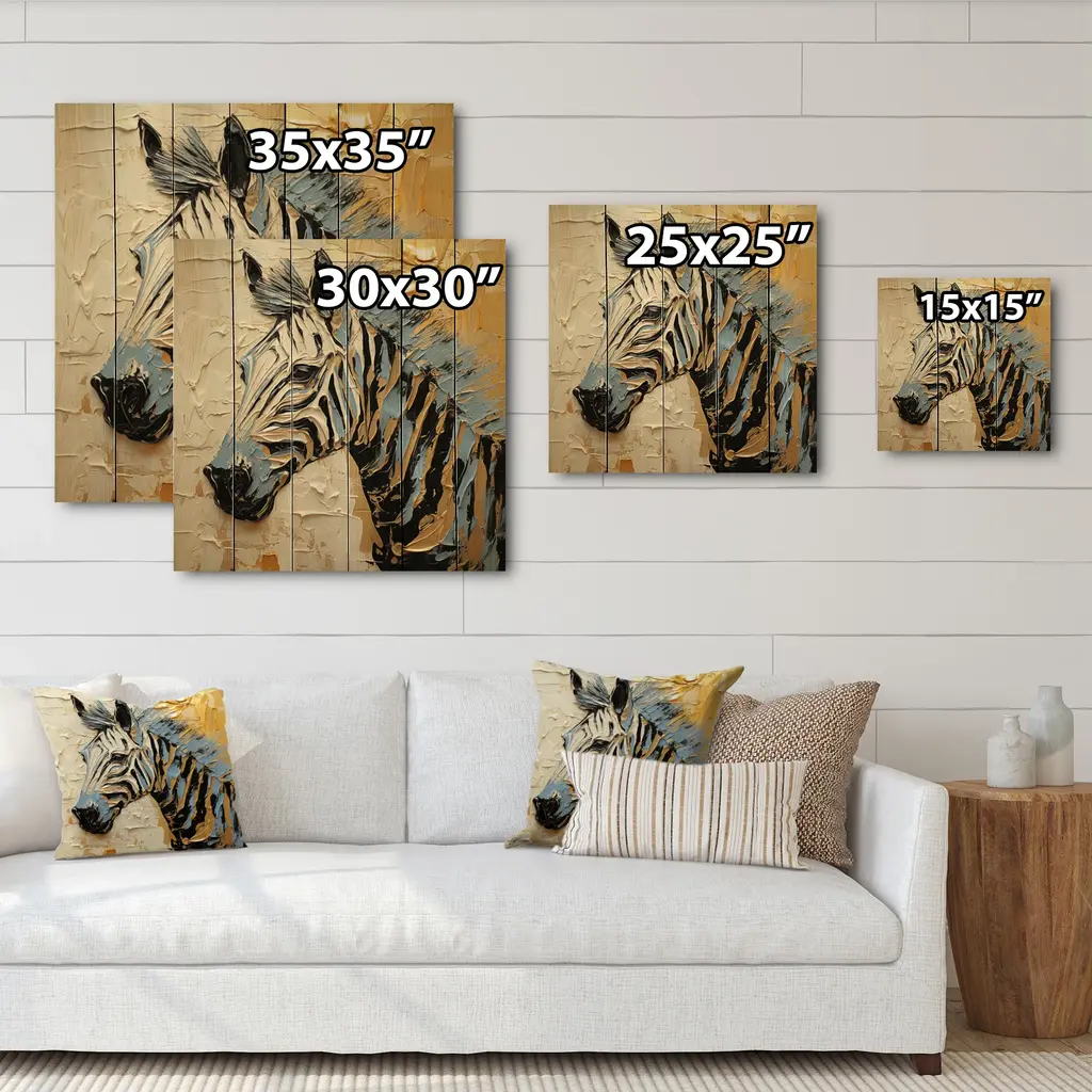 Designart "Black Yellow Zebra Zebra This" Animals Print On Natural Pine Wood - 30 In. Wide X 30 In. High