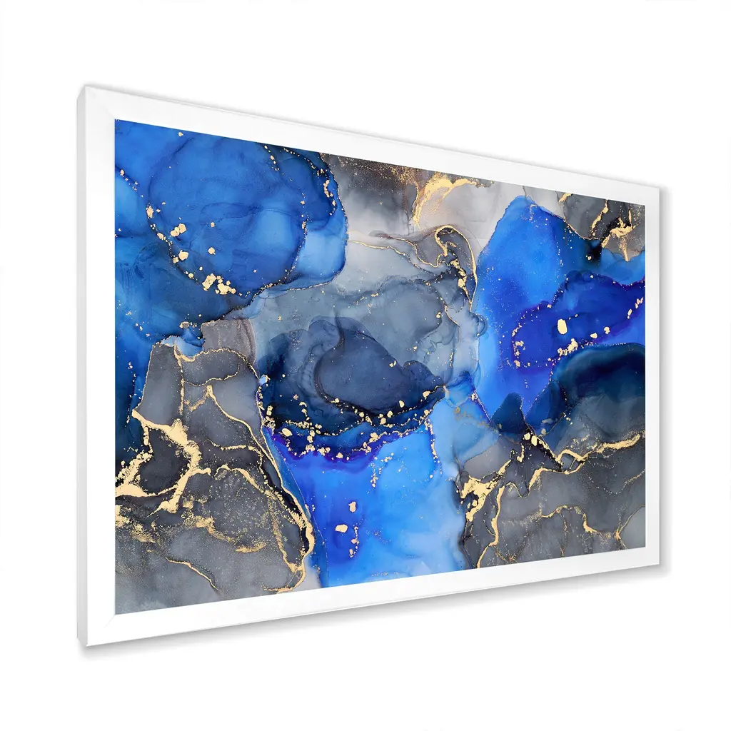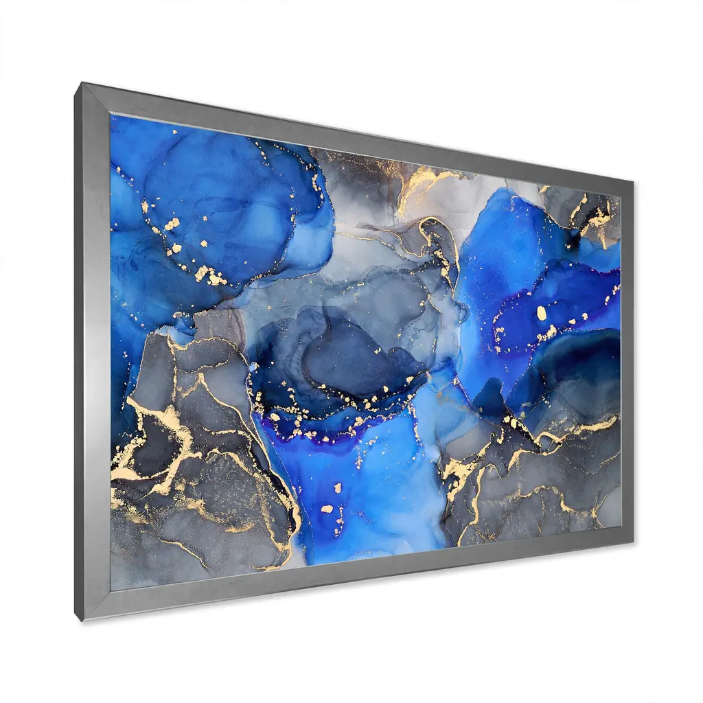 This beautiful Blue And Black Luxury Abstract Fluid Art I Framed wall Art is printed using the highest quality fade resistant ink on canvas. Every one of our Framed Giclee Prints is printed on premium quality canvas, using the finest quality inks which will not fade over time and then mounted and framed on a 1.5 inch wide frame. This framed art print is available in many different color frames. All of our framed art prints are carefully packaged with corner protectors, fragile labeling, and sturdy boxes to ensure a safe delivery. Every framed art arrives ready to hang on the wall, with the hanging kit included. Features: - Style : Modern & Contemporary - Subject : Abstract - Color : Blue - Premium quality cotton canvas mounted. - Available in several frame colors. - Arrives with instructions and hanging kit