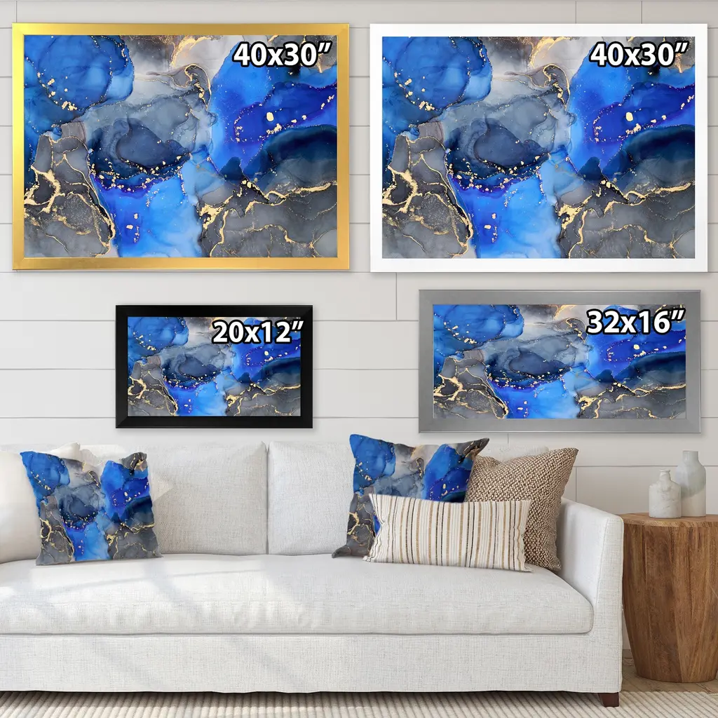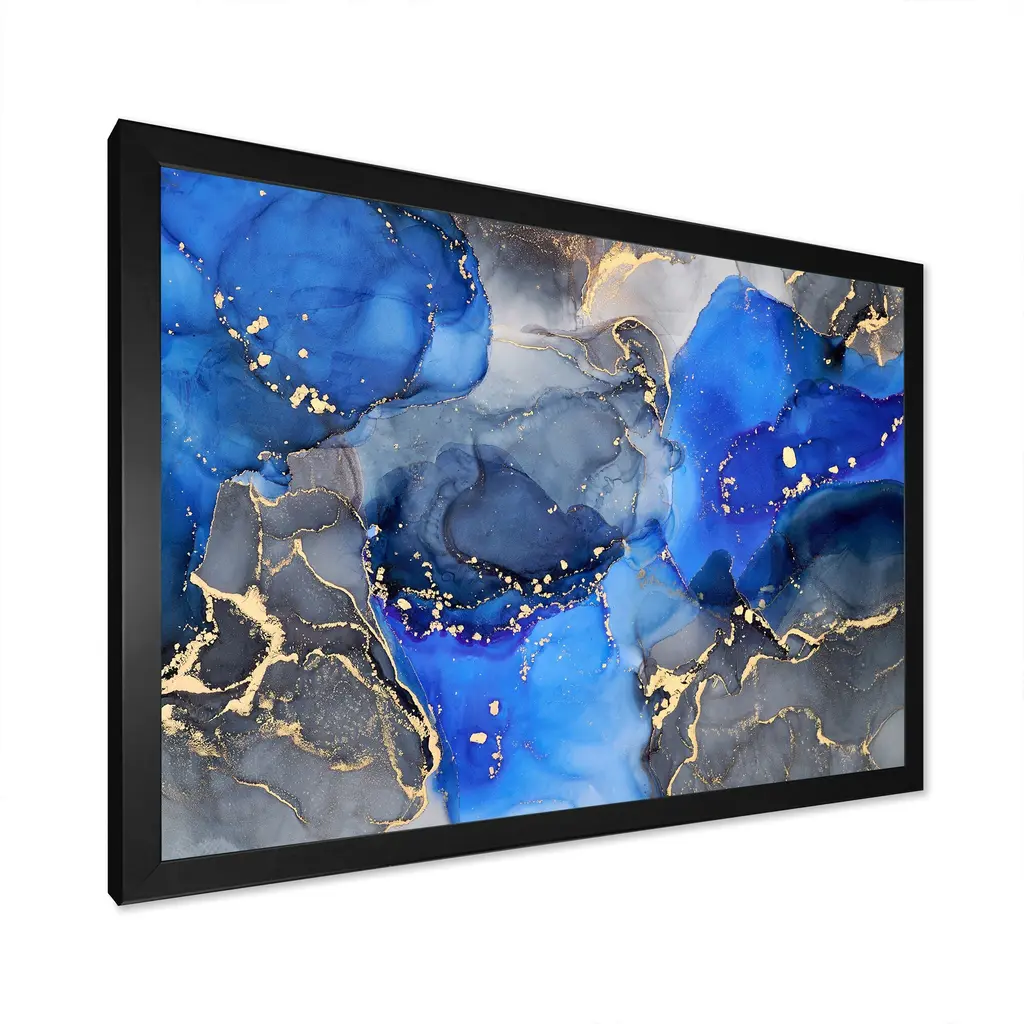 This beautiful Blue And Black Luxury Abstract Fluid Art I Framed wall Art is printed using the highest quality fade resistant ink on canvas. Every one of our Framed Giclee Prints is printed on premium quality canvas, using the finest quality inks which will not fade over time and then mounted and framed on a 1.5 inch wide frame. This framed art print is available in many different color frames. All of our framed art prints are carefully packaged with corner protectors, fragile labeling, and sturdy boxes to ensure a safe delivery. Every framed art arrives ready to hang on the wall, with the hanging kit included. Features: - Style : Modern & Contemporary - Subject : Abstract - Color : Blue - Premium quality cotton canvas mounted. - Available in several frame colors. - Arrives with instructions and hanging kit