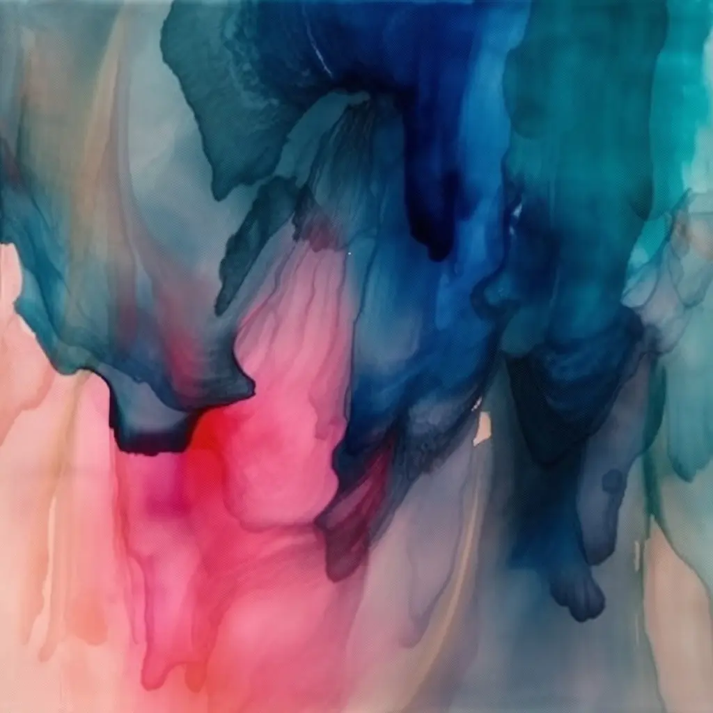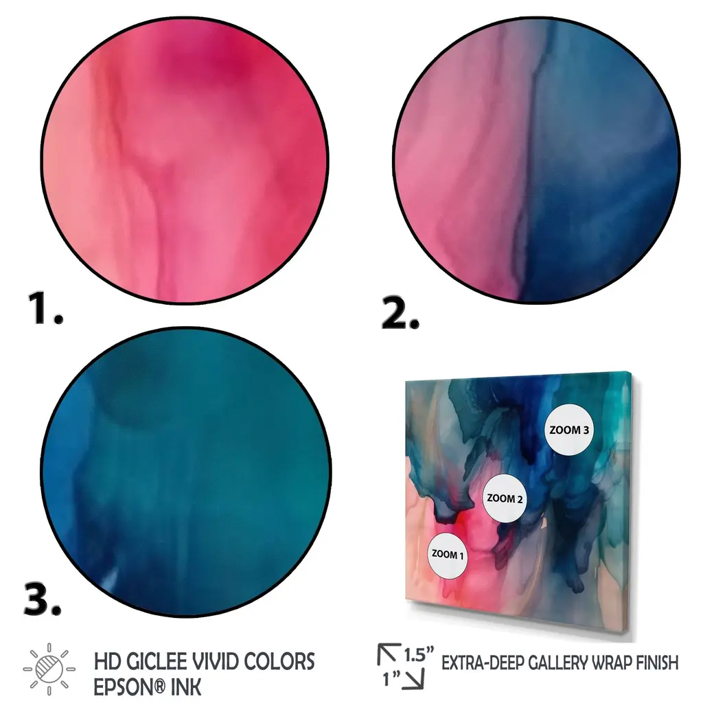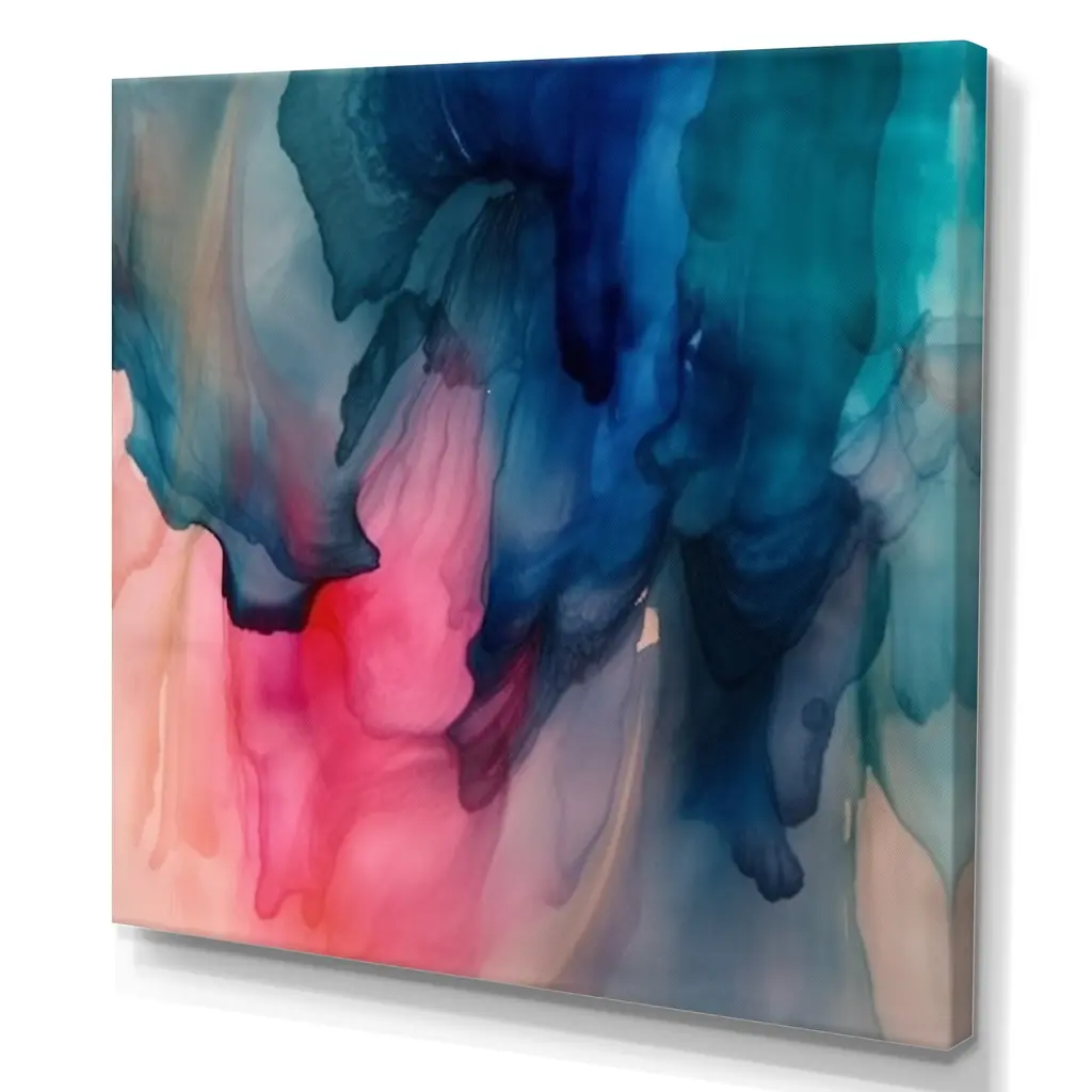 Designart "Blue And Pink Watercolor Mix" Abstract Painting Canvas Wall Art - 24 In. Wide X 24 In. High
