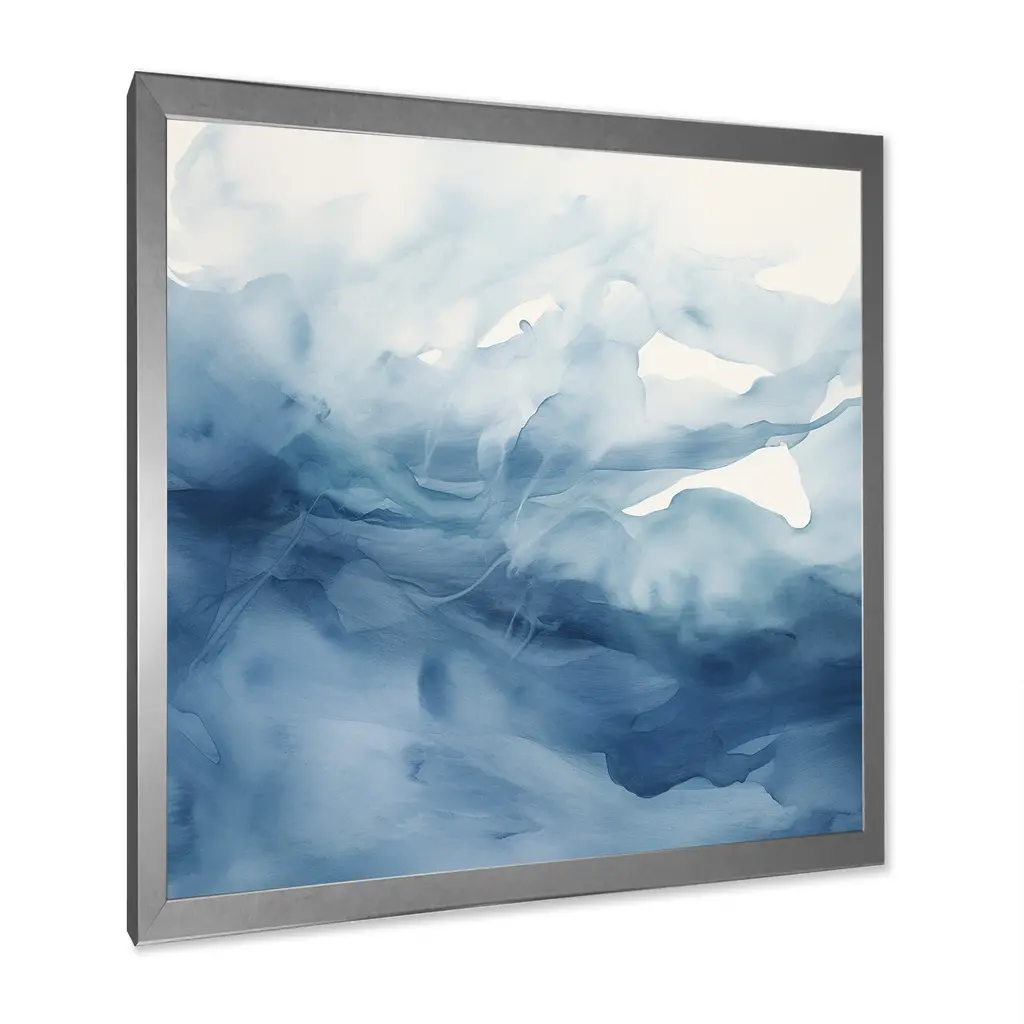 Designart "Blue And White Dancing Watercolor Clouds" Abstract Painting Framed Canvas Art Print - 16 In. Wide X 16 In. High - Silver