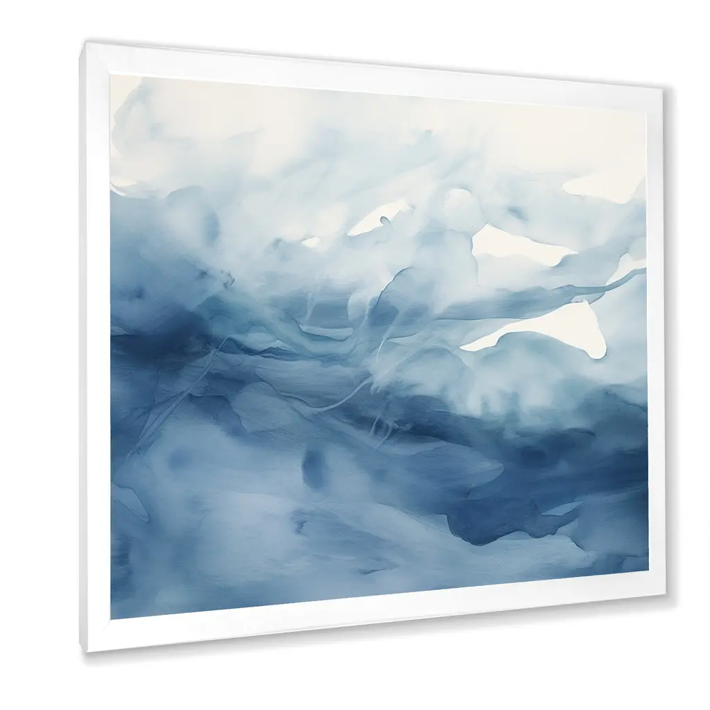 Designart "Blue And White Dancing Watercolor Clouds" Abstract Painting Framed Canvas Art Print - 24 In. Wide X 24 In. High - White