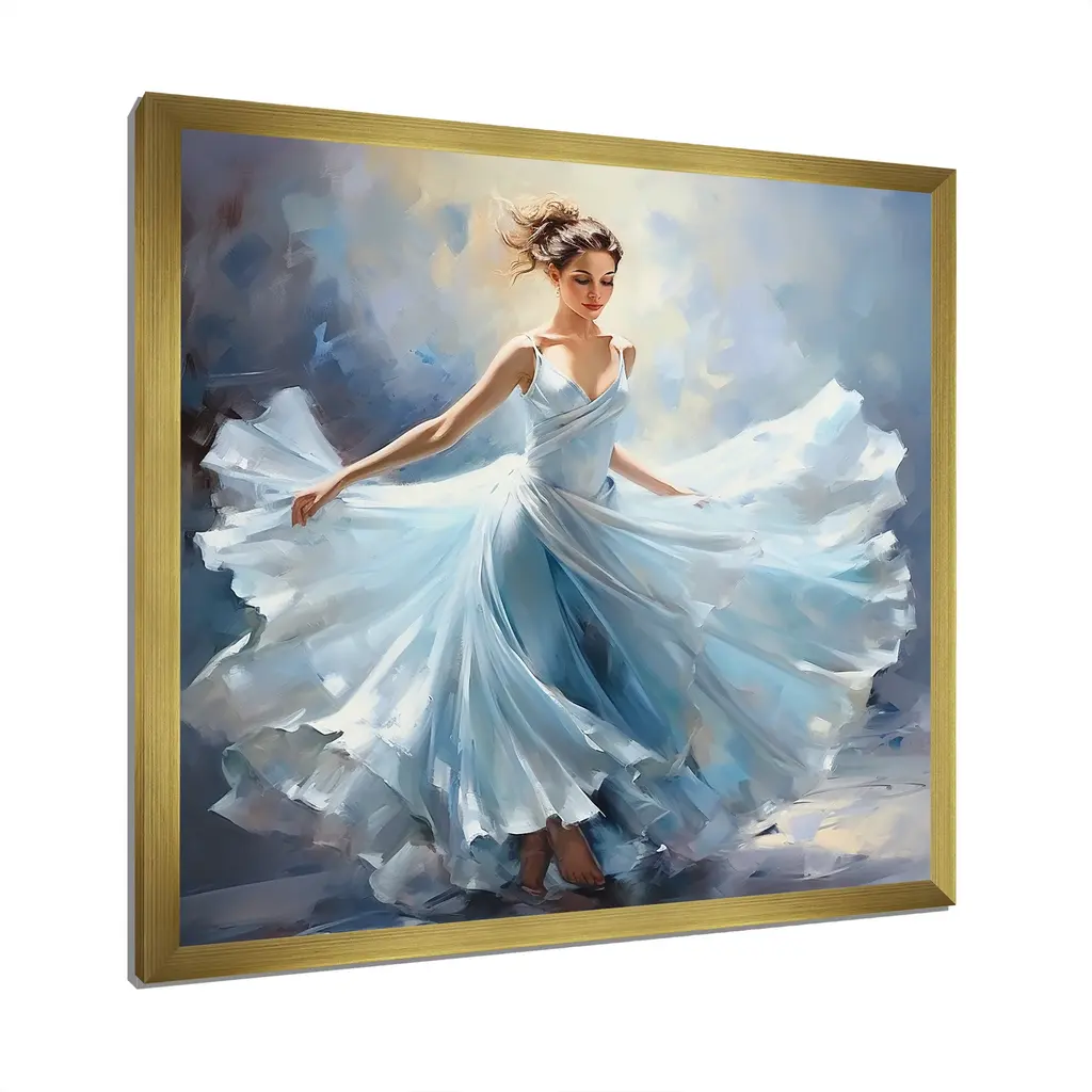 Designart "Blue Ballet Woman Radiance" Dance Framed Wall Art Living Room - 36 In. Wide X 36 In. High - Gold