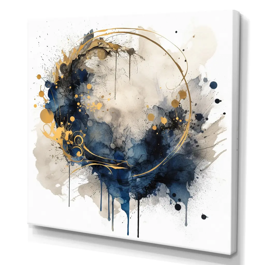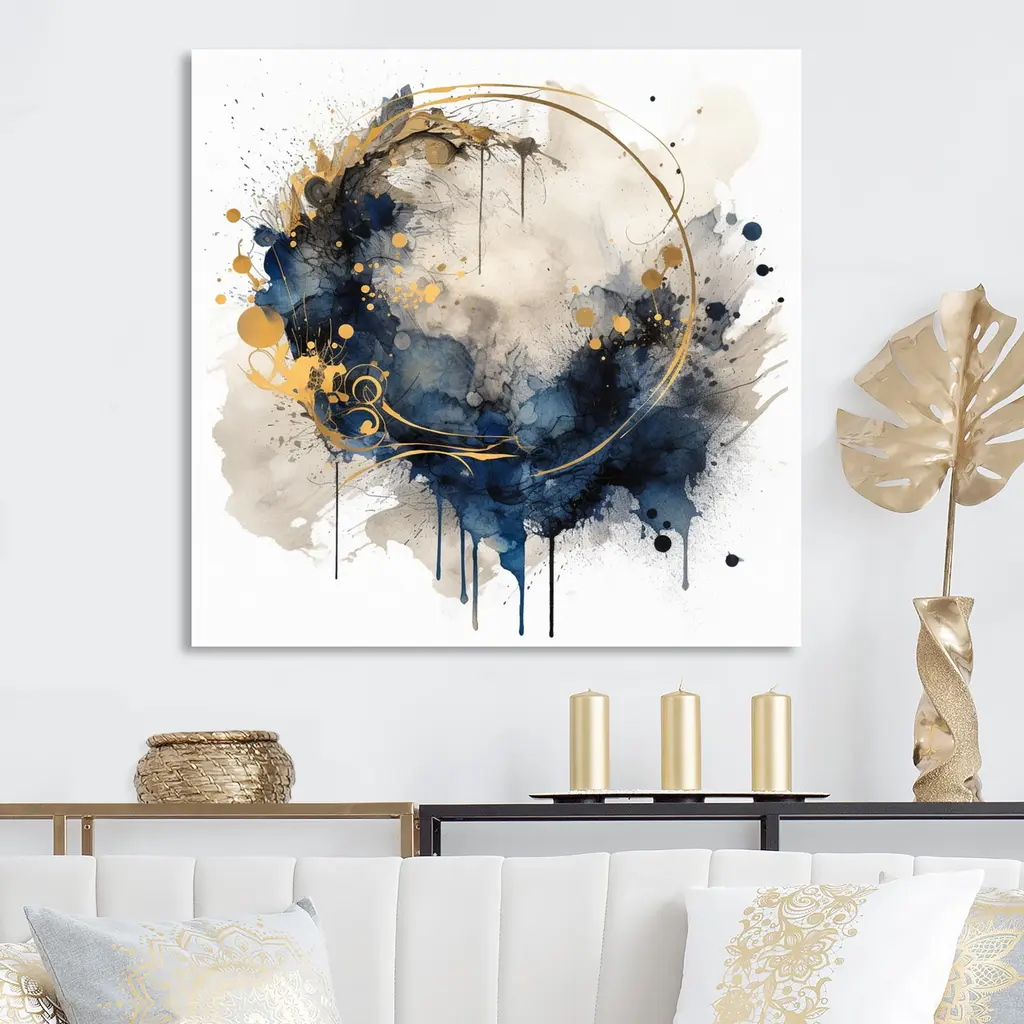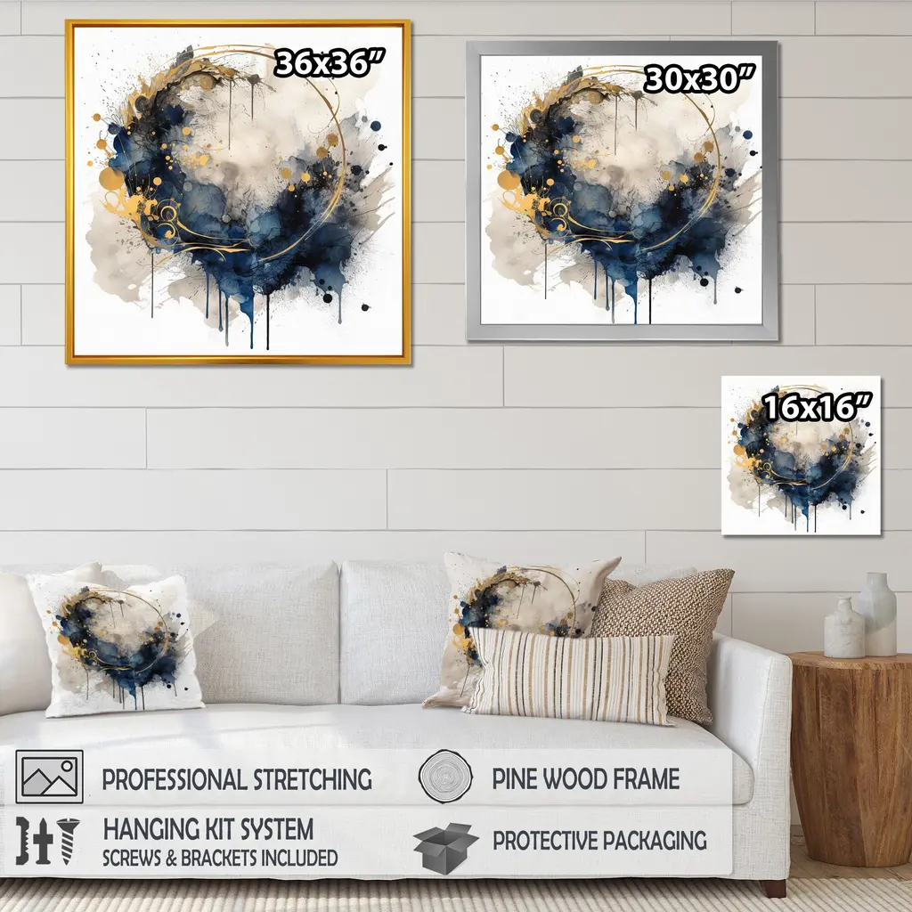 Designart "Blue Yellow Minimalims Fludity Ii" Minimalism Wall Art For Living Room - 36 In. Wide X 36 In. High