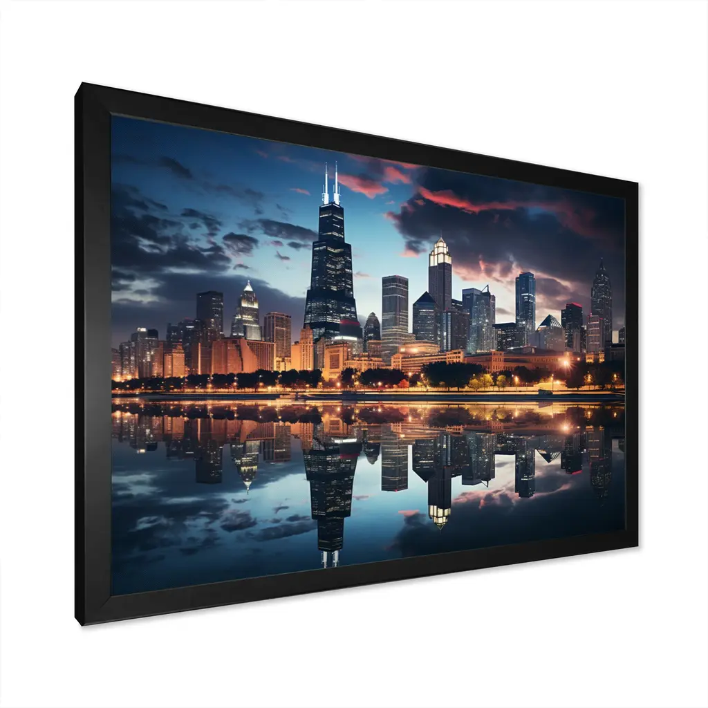 This beautiful "Chicago Beautiful Cityscape II" Framed wall Art is printed using the highest quality fade-resistant ink on canvas. Every one of our Cityscapes Wall art printed on premium quality cotton canvas, Each Industrial Canvas print is stretched tightly over a 1-inch wood sub frame for small size prints or a 1.5-inch wood sub frame for large size prints (40x30 44x34 ...) ensuring the canvas is taught and does not buckle. All of our Framed Canvas Prints are carefully packaged with corner protection, fragile labeling and sturdy boxes to ensure safe delivery. Every framed canvas print arrives ready to hang on the wall, with the hanging kits included. This framed art print is available in many different color frames. Features: - Style : Industrial, Modern & Contemporary - Subject : Cityscapes, Landscapes - Color : Blue - Premium quality cotton canvas. - Arrives ready to hang on the wall - Frame Tickness : 1 inch - Frame Width : 1.5 inch Wide - Easy to Hang