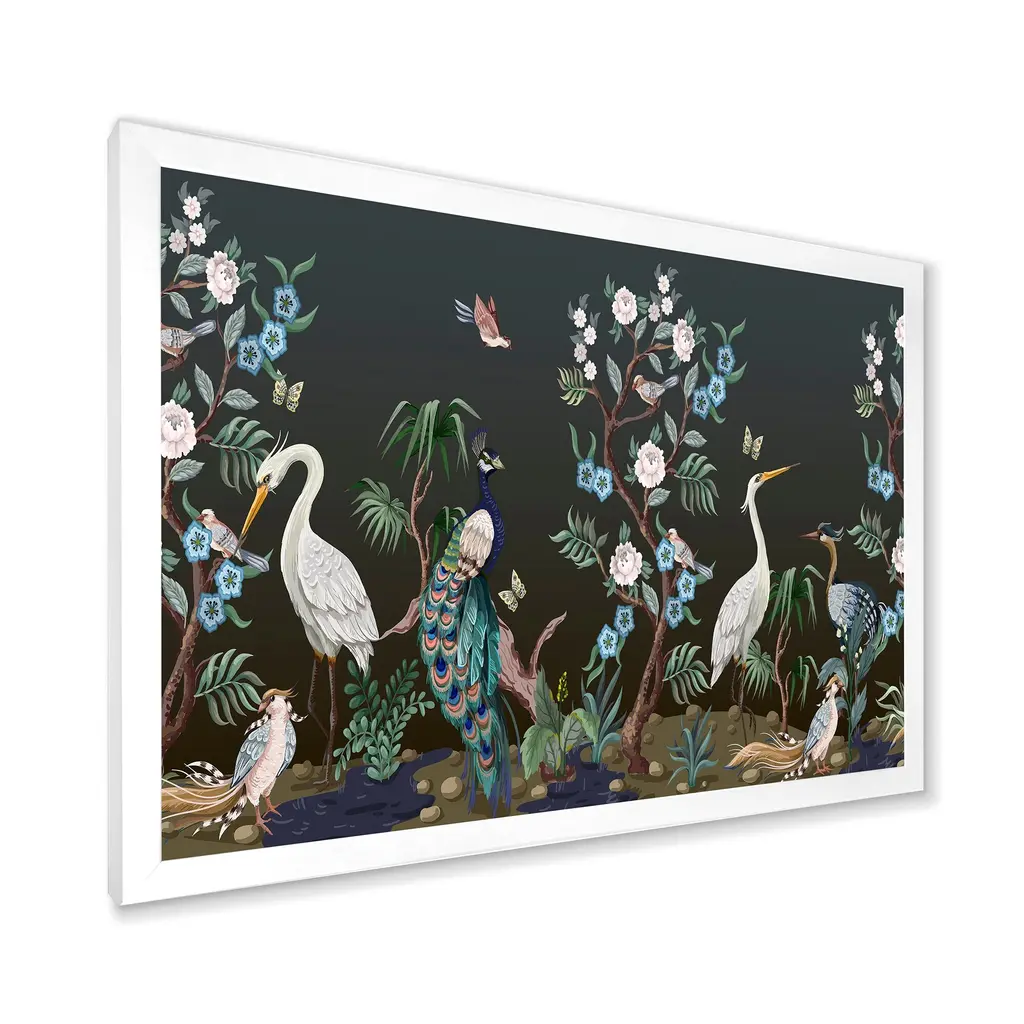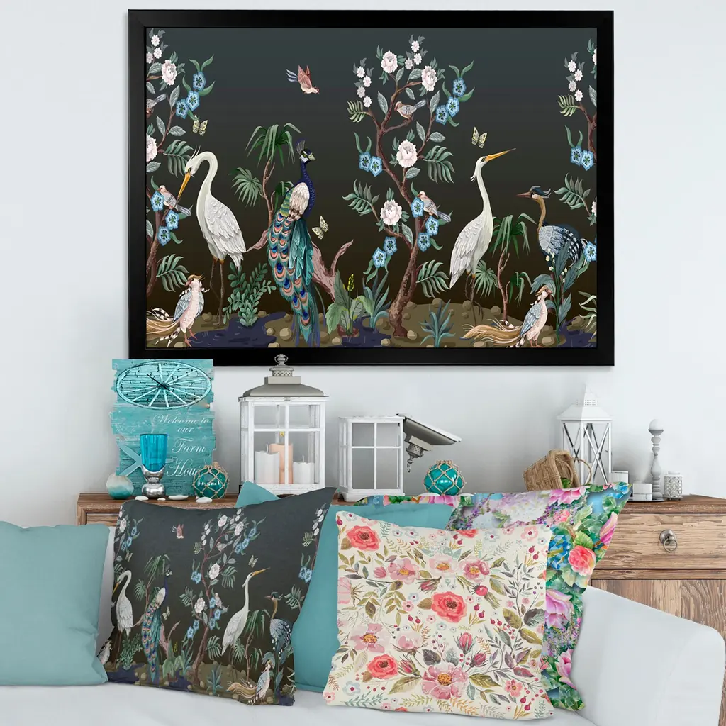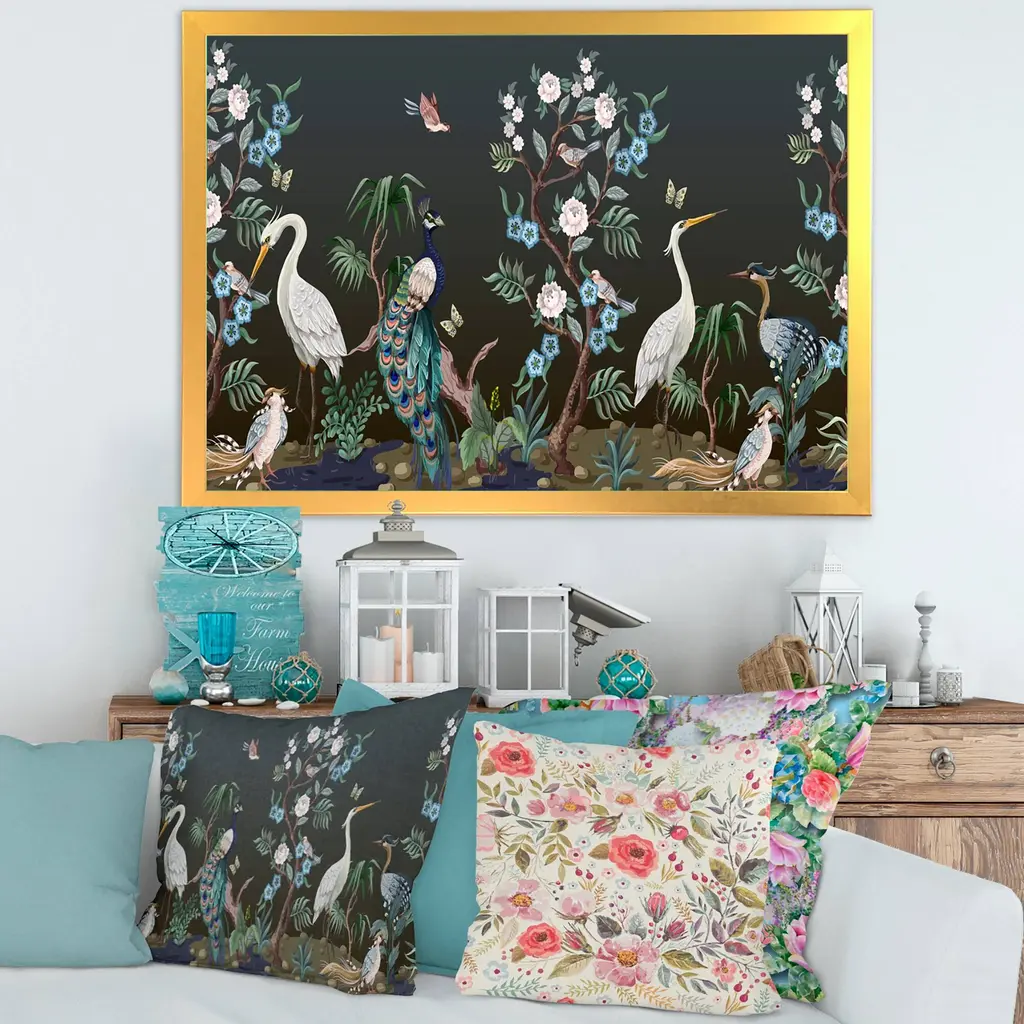 This beautiful Chinoiserie With Birds and Peonies IV Framed wall Art is printed using the highest quality fade resistant ink on canvas. Every one of our Framed Giclee Prints is printed on premium quality canvas, using the finest quality inks which will not fade over time and then mounted and framed on a 1.5 inch wide frame. This framed art print is available in many different color frames. All of our framed art prints are carefully packaged with corner protectors, fragile labeling, and sturdy boxes to ensure a safe delivery. Every framed art arrives ready to hang on the wall, with the hanging kit included. Features: - Style : Traditional - Subject : Animals - Color : Black - Premium quality cotton canvas mounted. - Available in several frame colors. - Arrives with instructions and hanging kit