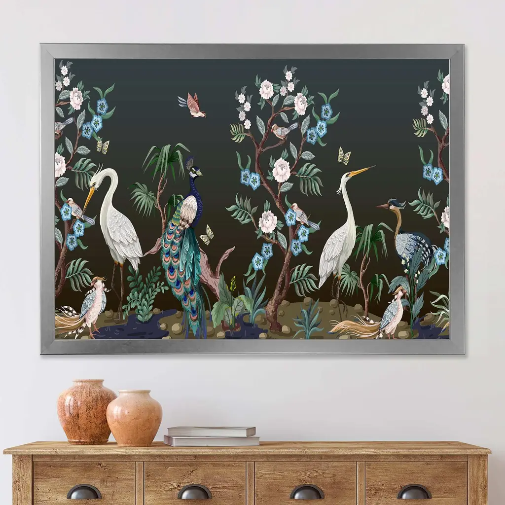 This beautiful Chinoiserie With Birds and Peonies IV Framed wall Art is printed using the highest quality fade resistant ink on canvas. Every one of our Framed Giclee Prints is printed on premium quality canvas, using the finest quality inks which will not fade over time and then mounted and framed on a 1.5 inch wide frame. This framed art print is available in many different color frames. All of our framed art prints are carefully packaged with corner protectors, fragile labeling, and sturdy boxes to ensure a safe delivery. Every framed art arrives ready to hang on the wall, with the hanging kit included. Features: - Style : Traditional - Subject : Animals - Color : Black - Premium quality cotton canvas mounted. - Available in several frame colors. - Arrives with instructions and hanging kit