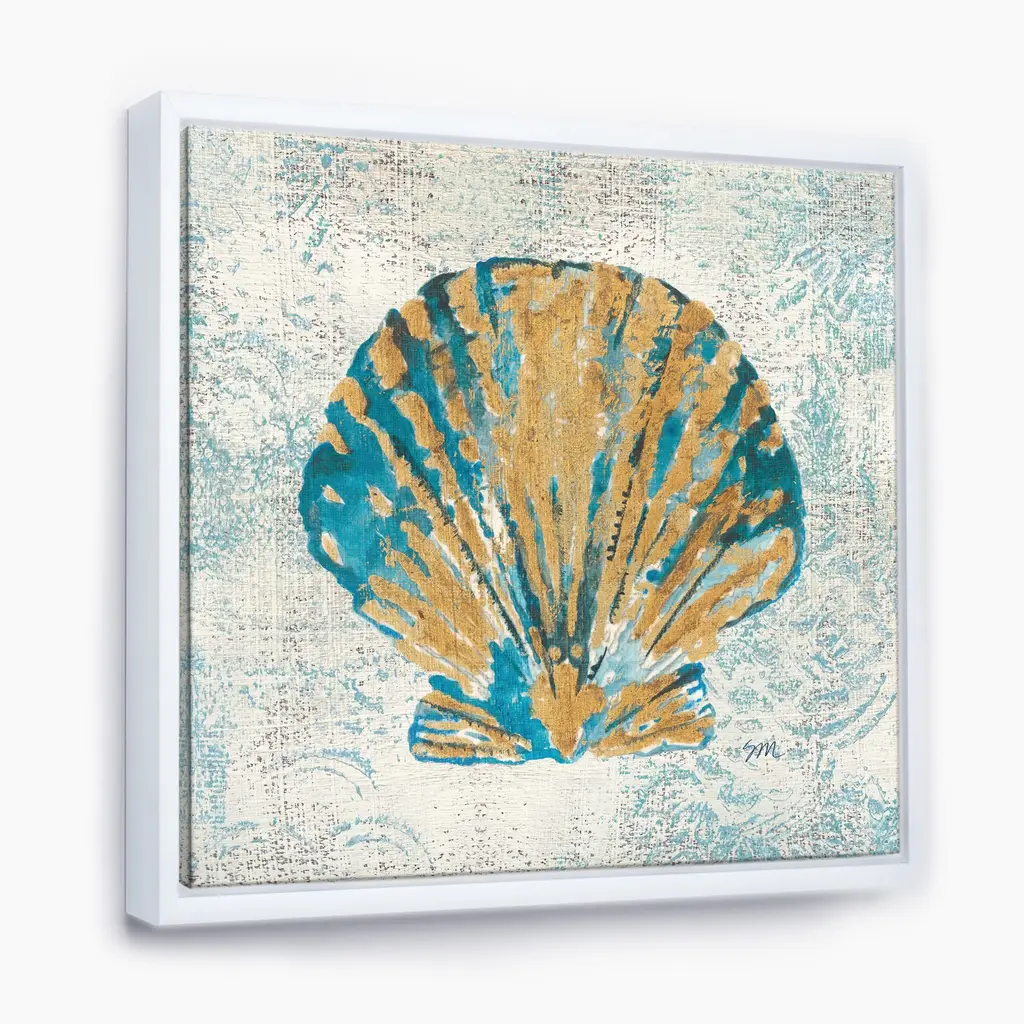 This beautiful Coastal Pastel seashells I Framed Canvas Art is printed using the highest quality fade-resistant ink on canvas. Every one of our fine art giclee canvas prints is printed on premium quality canvas, using the finest quality inks which will not fade over time. Each giclee print is stretched tightly over a 1-inch wood sub frame ensuring the canvas is taught and does not buckle. The canvas print is inserted into a wood floating frame. All of our Framed canvas prints are carefully packaged with corner protection, fragile labeling and sturdy boxes to ensure safe delivery. Every framed canvas print arrives ready to hang on the wall, with the hanging kits included. Features: - Style : Nautical & Coastal, Vintage, Traditional - Subject : Beach - Color : Blue, Gold - Premium quality cotton canvas. - Arrives ready to hang on the wall - Easy to Hang