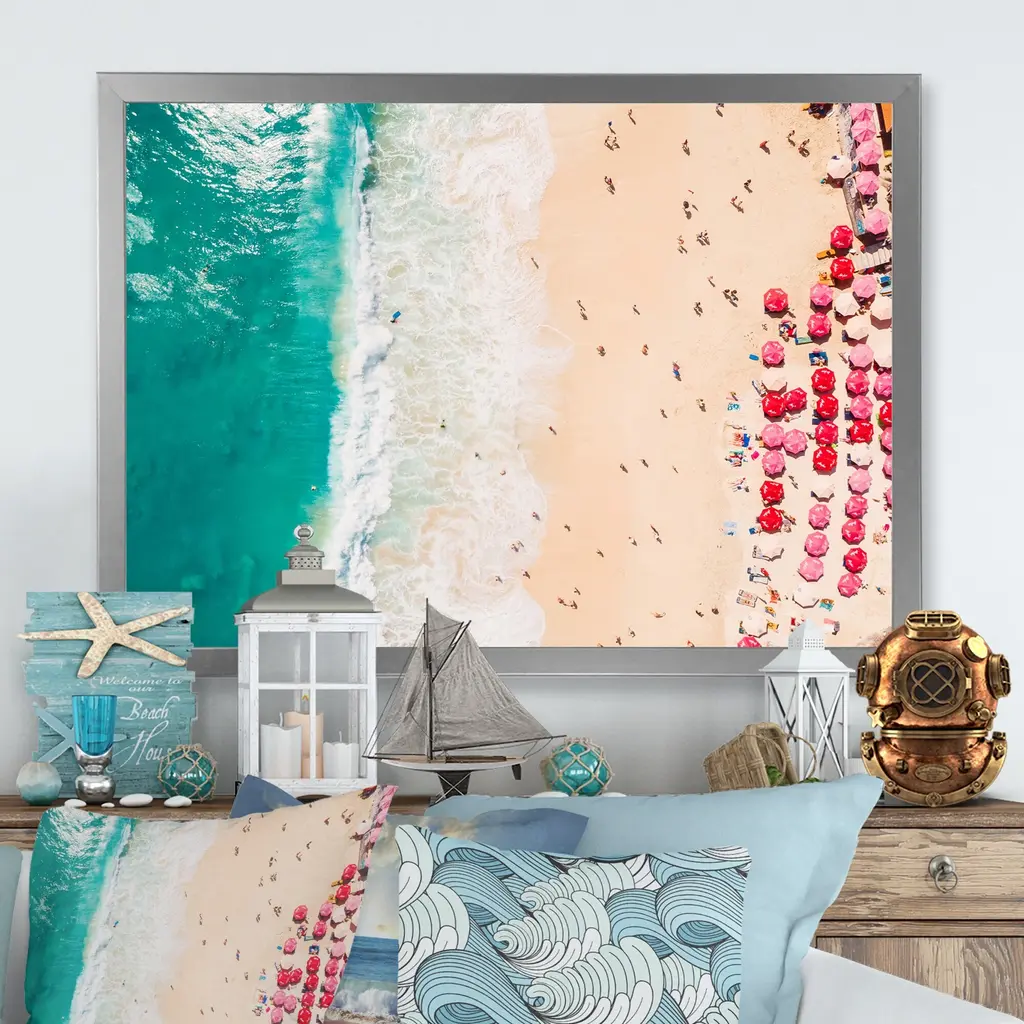 This beautiful Coastline Ocean Beach Aerian View Framed wall Art is printed using the highest quality fade resistant ink on canvas. Every one of our Framed Giclee Prints is printed on premium quality canvas, using the finest quality inks which will not fade over time and then mounted and framed on a 1.5 inch wide frame. This framed art print is available in many different color frames. All of our framed art prints are carefully packaged with corner protectors, fragile labeling, and sturdy boxes to ensure a safe delivery. Every framed art arrives ready to hang on the wall, with the hanging kit included. Features: - Style : Nautical & Coastal - Subject : Beach, Nautical & Beach, Beach & Ocean - Color : Multi-Color - Premium quality cotton canvas mounted. - Available in several frame colors. - Arrives with instructions and hanging kit