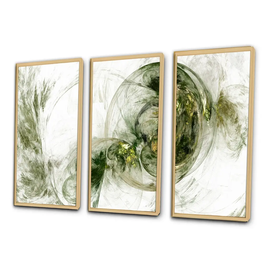 Designart "Colored Smoke Green" Abstract Framed Art Prints Set Of 3 - 4 Colors Of Frames - 36 In. Wide X 20 In. High - 3 Panels - Black
