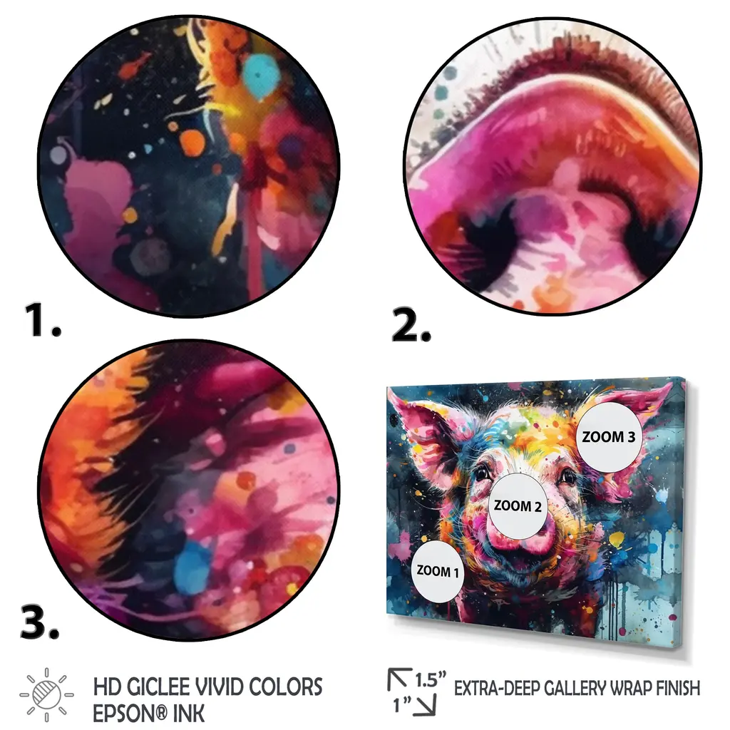 This beautiful Colorful Pig Portait Canvas Art is printed using the highest quality fade resistant ink on canvas. Every one of our fine art giclee canvas prints is printed on premium quality cotton canvas, using the finest quality inks which will not fade over time. Each giclee print is stretched tightly over a 1 inch wood sub frame for small size prints or a 1.5 inch wood sub frame for large size prints (40x30 60x28 ...) ensuring the canvas is taught and does not buckle. This canvas art print is gallery-wrapped (the design continues on the sides) , giving it a real art gallery feel. All of our canvas prints are carefully packaged with plastic protection, fragile labeling and sturdy boxes to ensure a safe delivery. Every canvas print arrives ready to hang on the wall, with the hanging kits included. - Style : Modern & Contemporary, Children's Art - Subject : Animals - Color : Pink - This canvas giclee print is gallery-wrapped (the design continues on the sides) , giving it a real art gallery feel. - Premium quality cotton canvas. - Arrives ready to hang on the wall - Easy to Hang