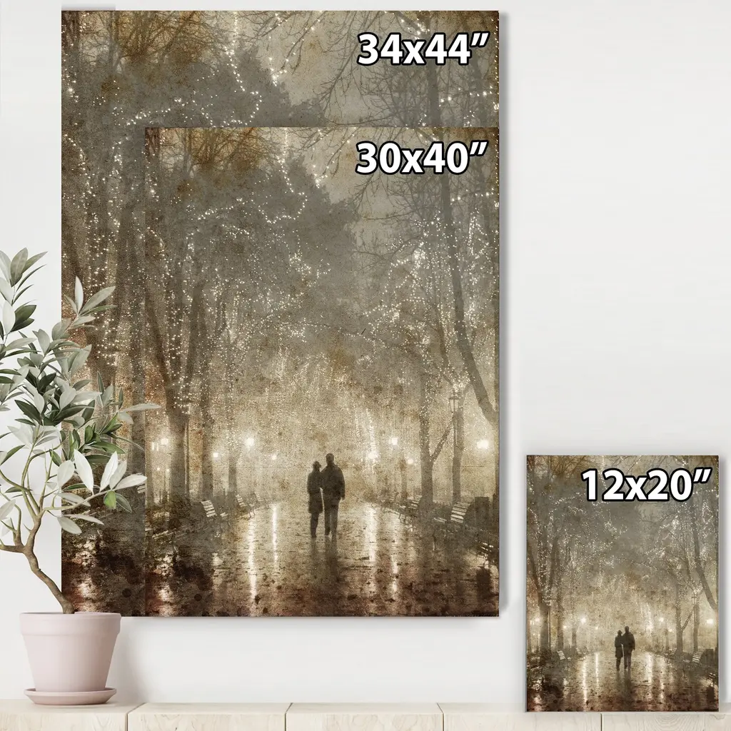 Designart "Couple Walking In Night Lights" Landscape Photography Canvas Print - 12 In. Wide X 20 In. High
