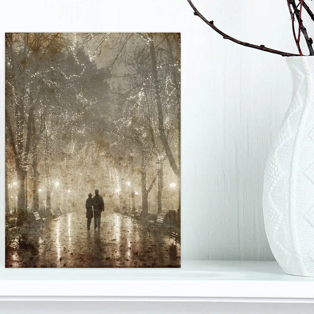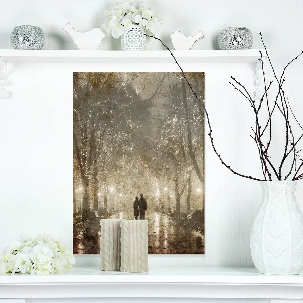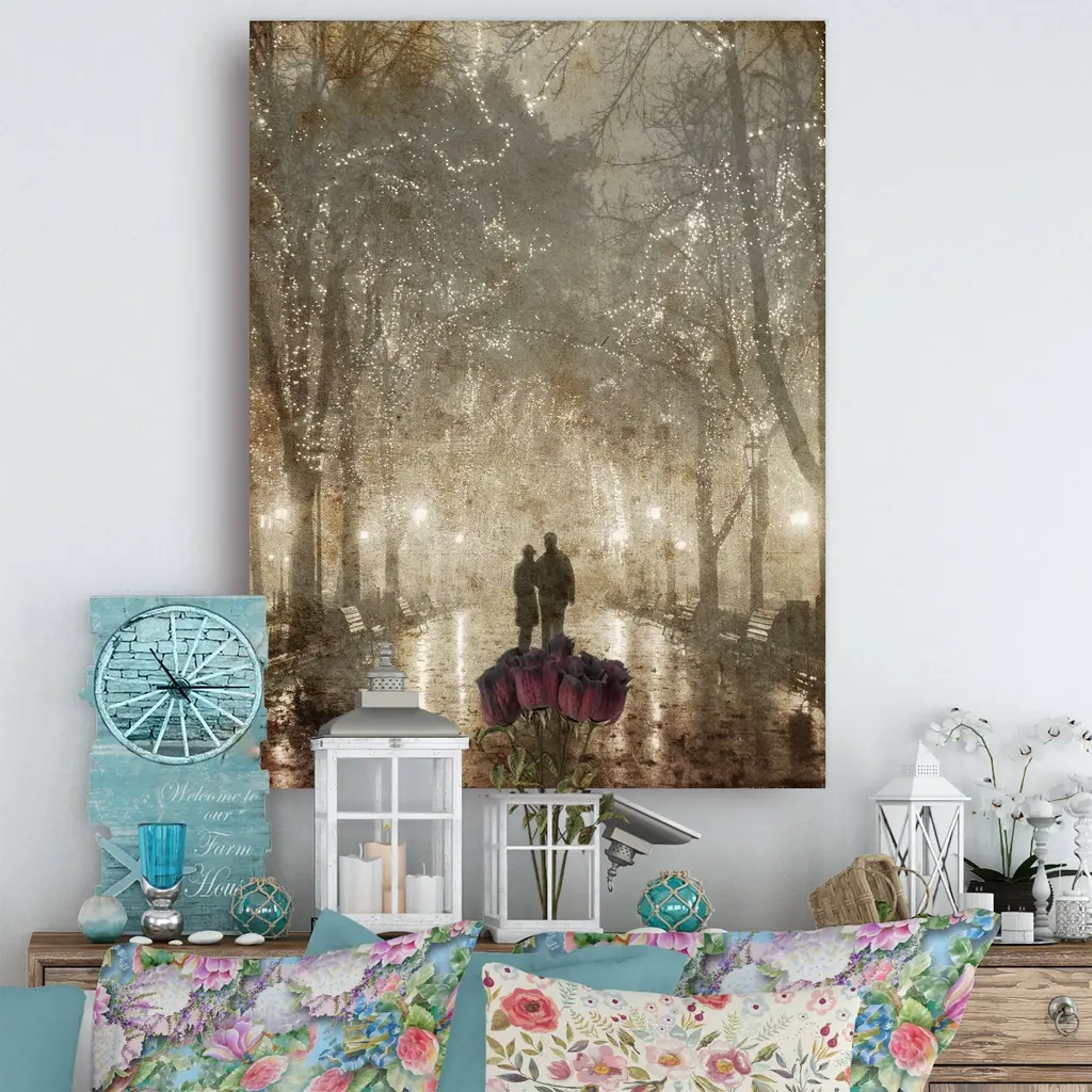 Designart "Couple Walking In Night Lights" Landscape Photography Canvas Print - 8 In. Wide X 12 In. High