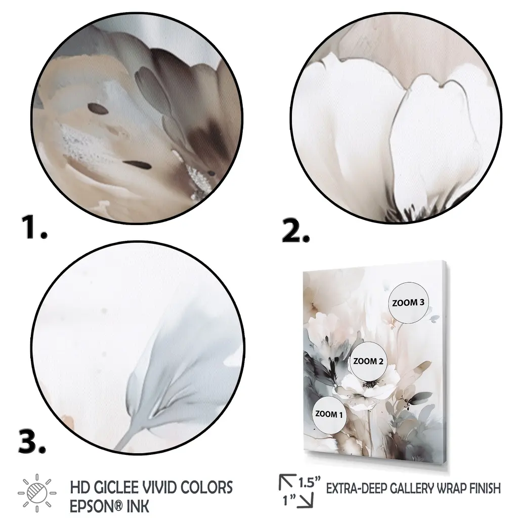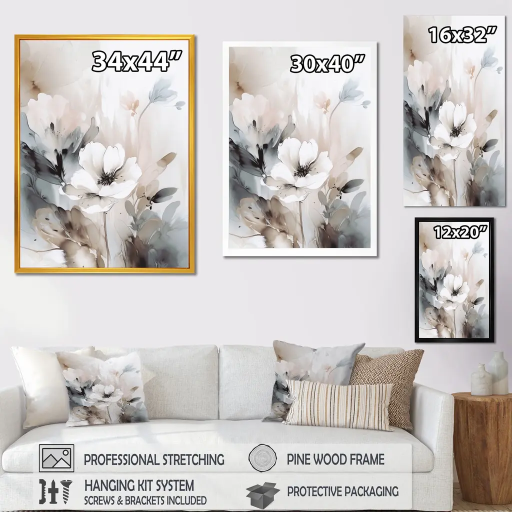 Designart "Delicate Grey Flowers Iv" Floral Canvas Wall Art - 12 In. Wide X 20 In. High