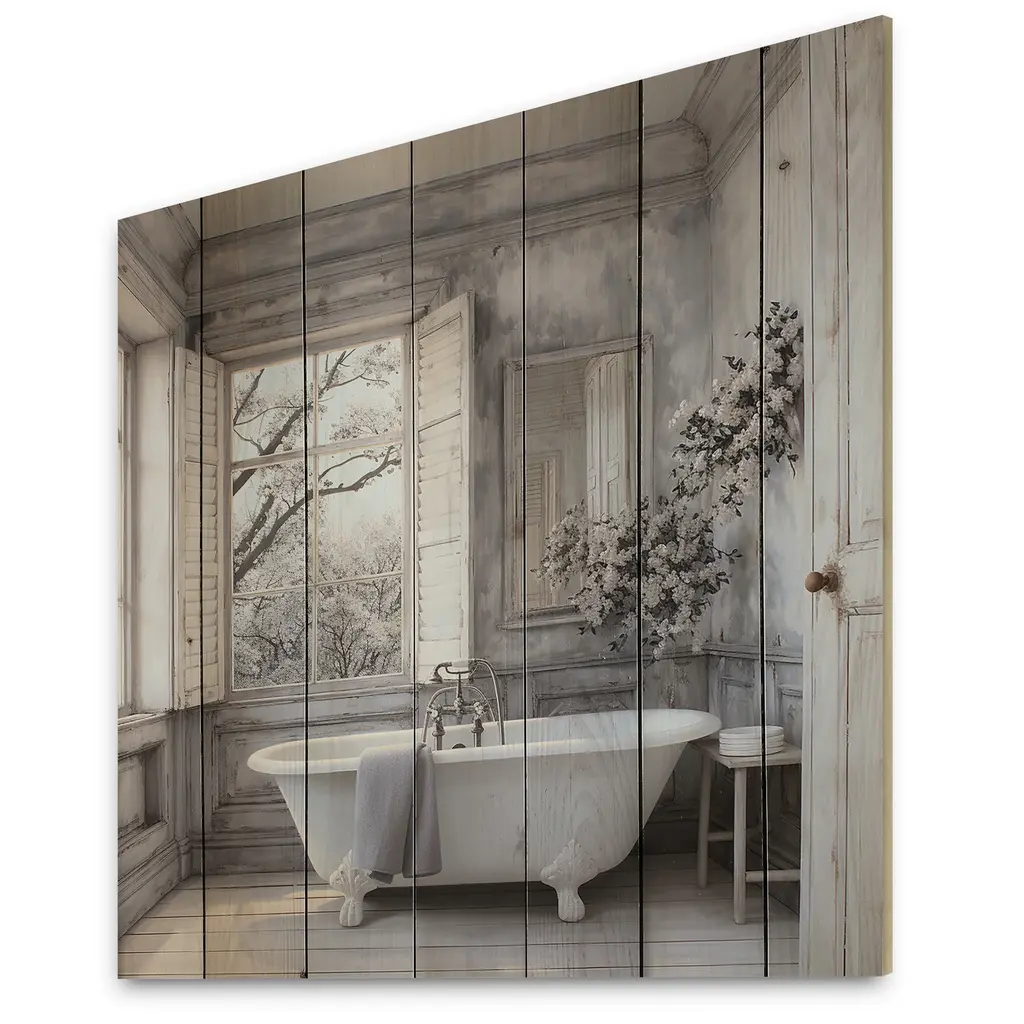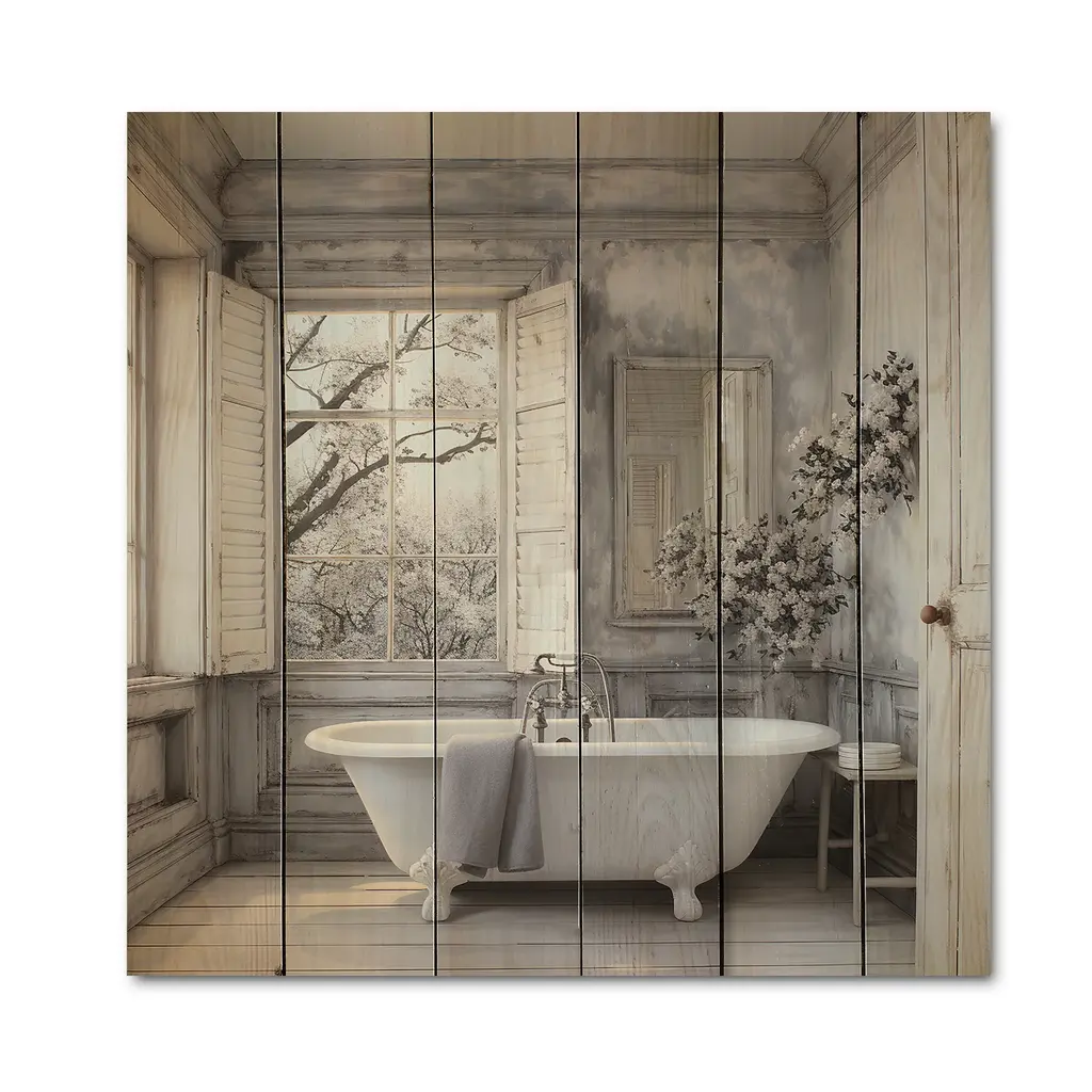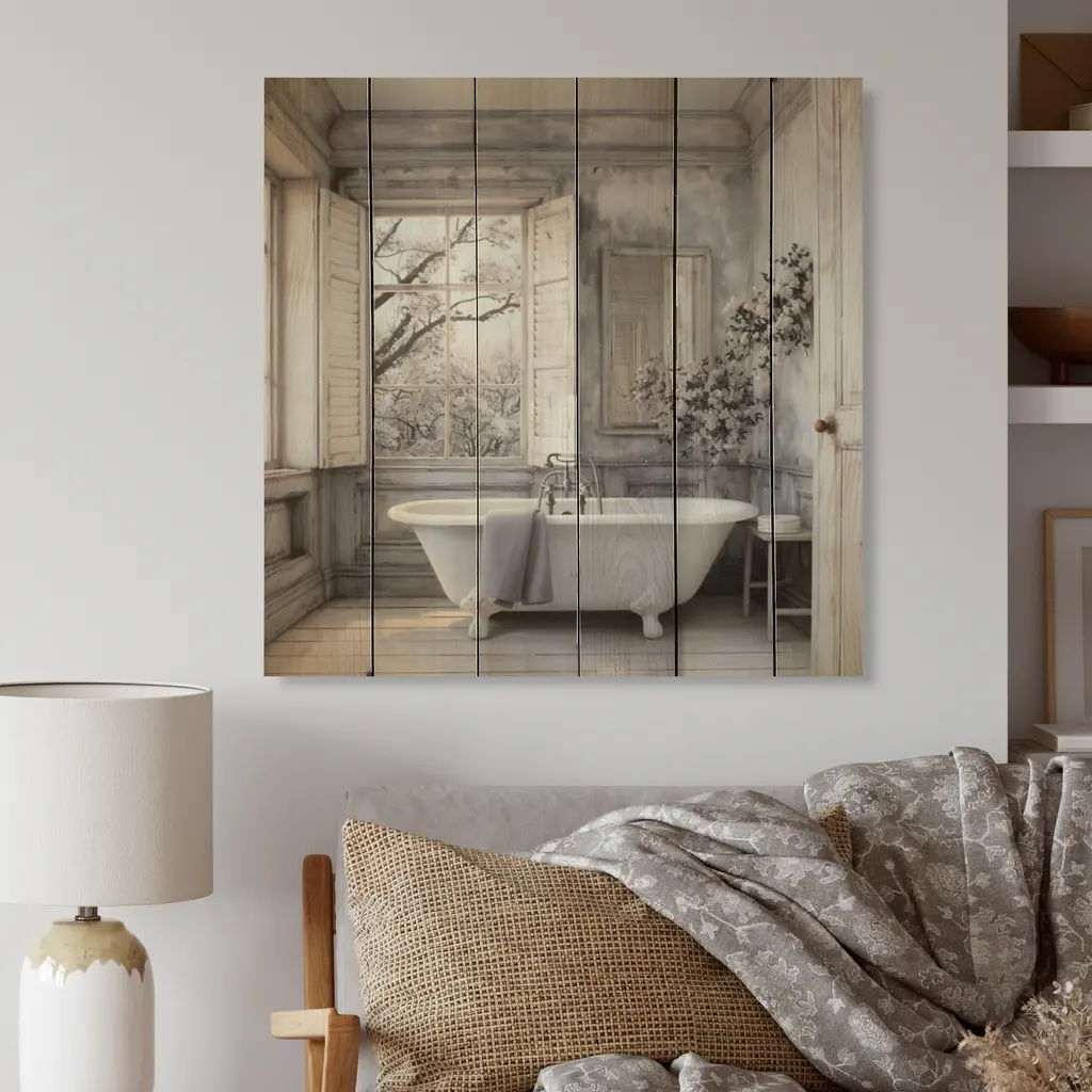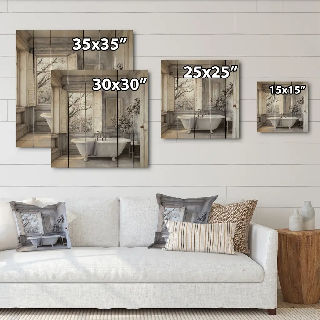 Designart "Farmhouse Bathroom Charm Ii" Bath & Laundry Print On Natural Pine Wood - 30 In. Wide X 30 In. High