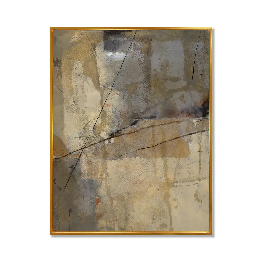 Designart "Geometric Cream Block I" Modern Glam Framed Canvas - Multi-Color - 34 In. Wide X 44 In. High - Gold