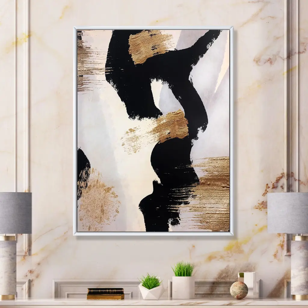 Designart "Glam Collage Ii" Modern & Contemporary Framed Canvas Print - Black - 30 In. Wide X 40 In. High - Gold