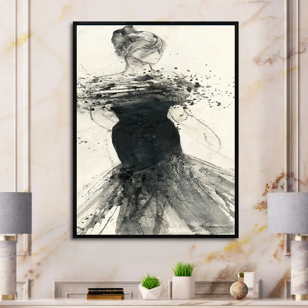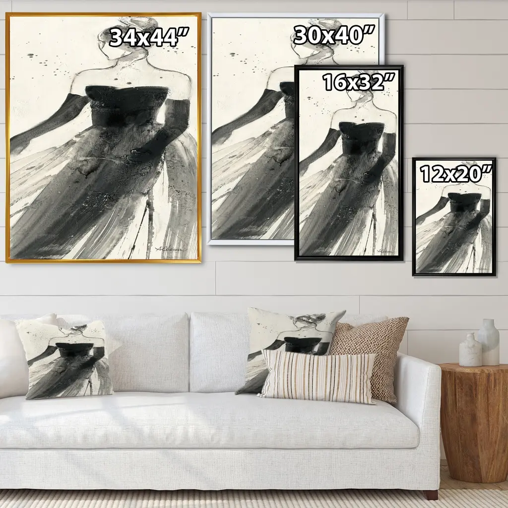 Designart "Glam Dancing Ii" Fashion Figures Framed Canvas - Black - 16 In. Wide X 32 In. High - White