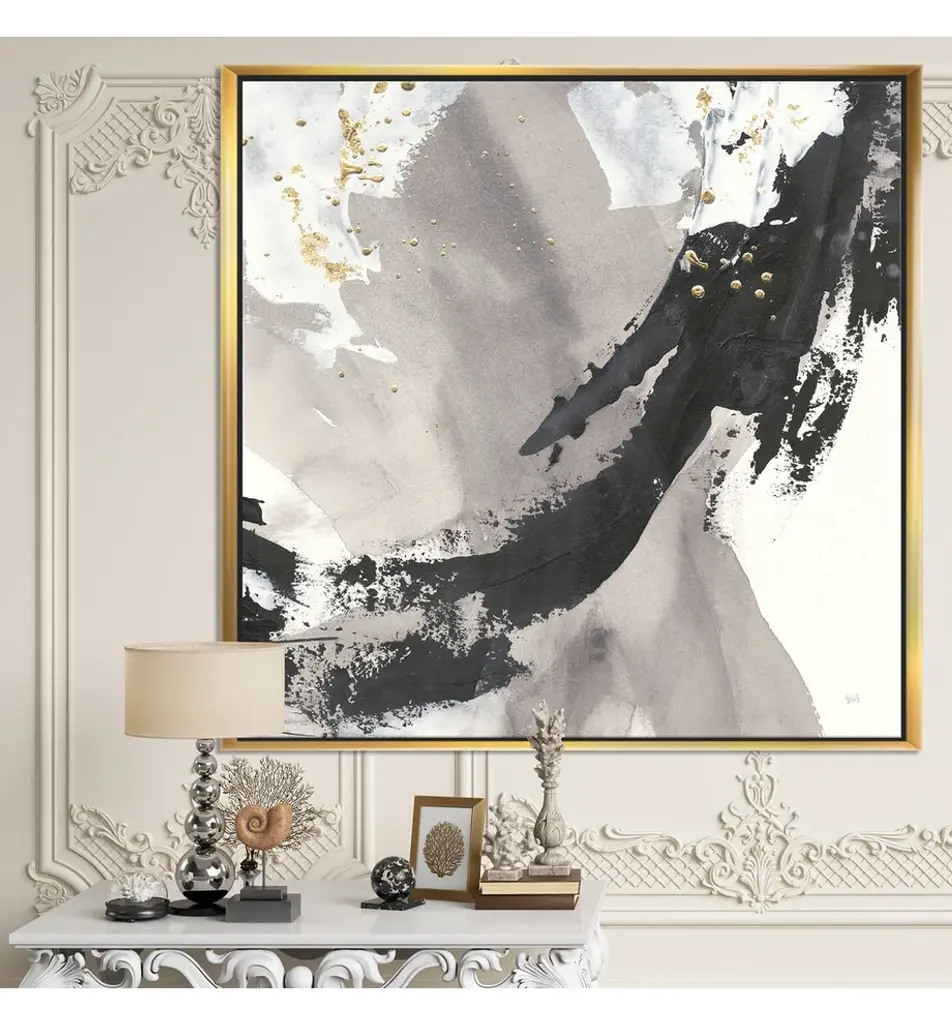 This beautiful Glam Painted Arcs III Framed Canvas Art is printed using the highest quality fade resistant ink on canvas. Every one of our fine art giclee canvas prints is printed on premium quality canvas, using the finest quality inks which will not fade over time. Each giclee print is stretched tightly over a 1 inch wood sub frame ensuring the canvas is taught and does not buckle.The canvas print is after insert into wood floating frame.The canvas art print is gallery-wrapped (the design continues on the sides) , giving it a real art gallery feel. All of our Framed canvas prints are carefully packaged with corner protection, fragile labeling and sturdy boxes to ensure a safe delivery. Every canvas print arrives ready to hang on the wall, with the hanging kits included.Features:Style : Modern & Contemporary, TransitionalSubject : Abstract, FashionColor : BlackPremium quality cotton canvas.Arrives ready to hang on the wallEasy to Hang