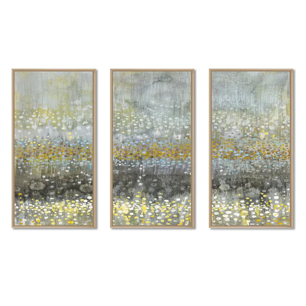 Designart "Glam Rain Abstract Iii" Modern & Contemporary Framed Wall Decor Set Of 3 - 4 Colors Of Frames - 36 In. Wide X 28 In. High - 3 Panels - Maple