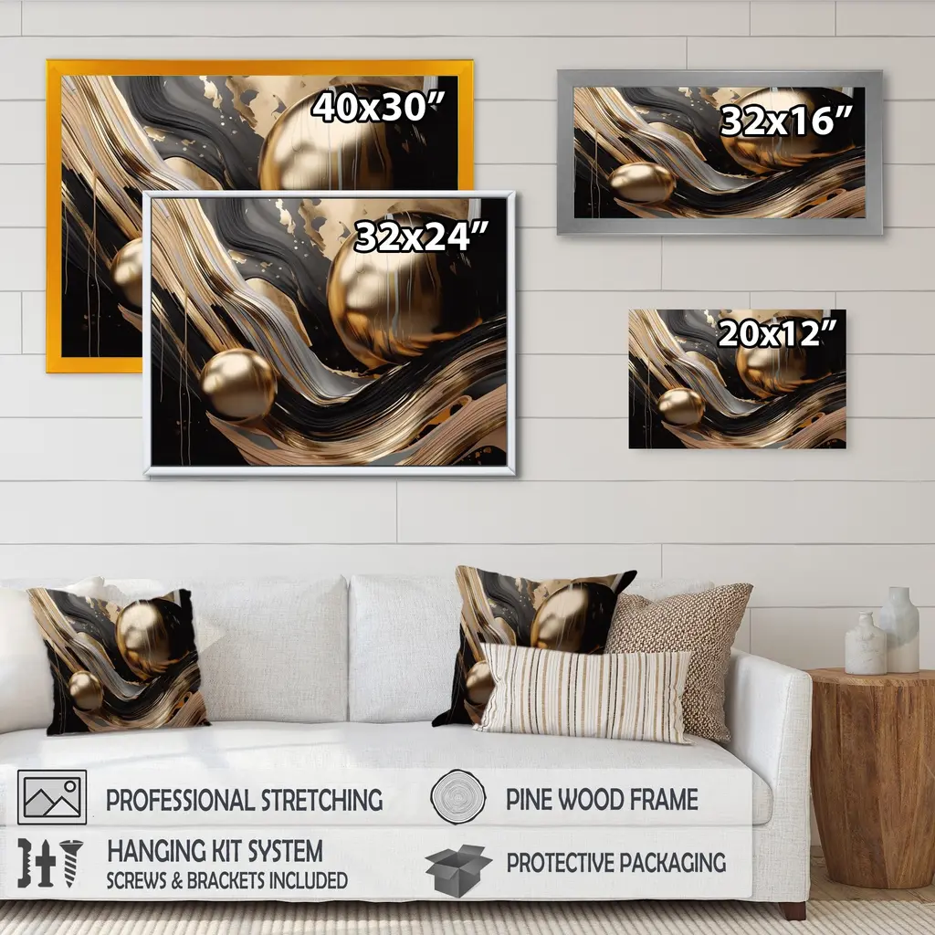 Designart "Gold And Black Captivating Marble I" Abstract Marble Framed Canvas Art Print - 20 In. Wide X 12 In. High - Black