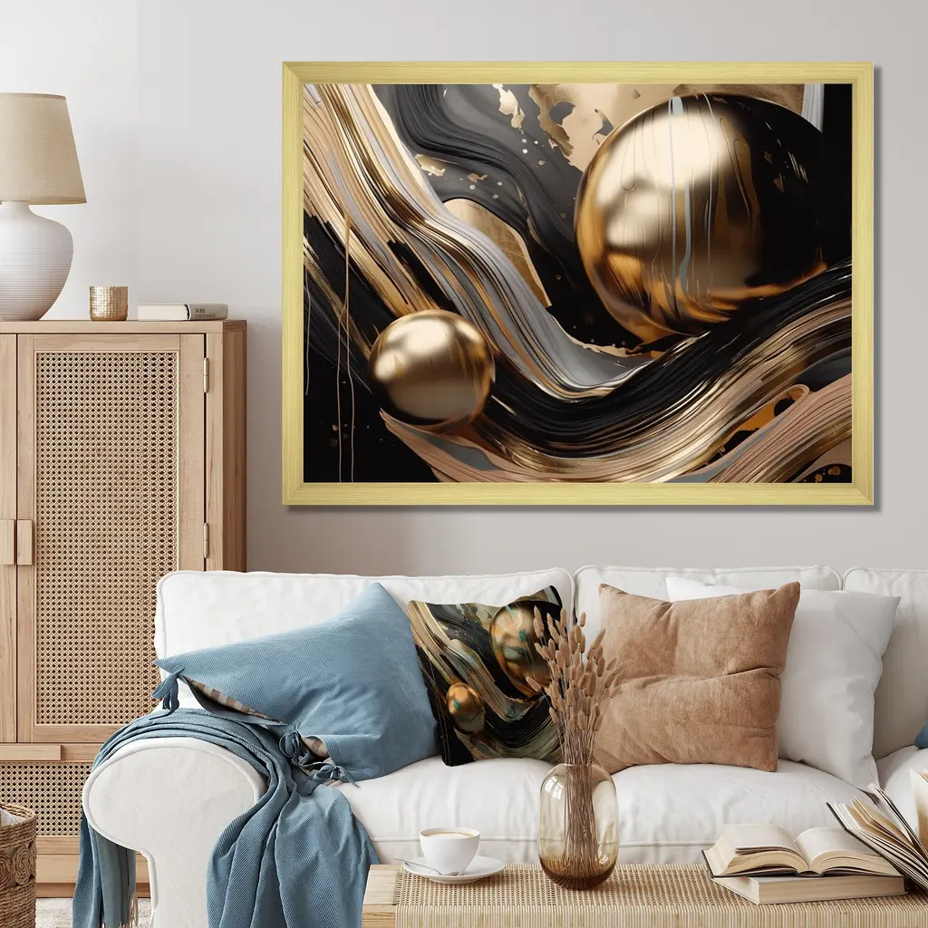 This beautiful 'Gold And Black Captivating Marble I' Framed wall Art is printed using the highest quality fade-resistant ink on canvas. Every one of our fine art giclee canvas prints is printed on premium quality canvas, using the finest quality inks which will not fade over time, and then mounted and framed on a 1.5 inch wide frame. All of our Framed canvas prints are carefully packaged with corner protection, fragile labeling and sturdy boxes to ensure safe delivery. Every framed canvas print arrives ready to hang on the wall, with the hanging kits included. This framed art print is available in many different color frames. Features: - Style : Modern & Contemporary - Subject : Abstract - Color : Gold - Premium quality cotton canvas. - Arrives ready to hang on the wall - Frame Tickness : 1 inch - Frame Width : 1.5 inch Wide - Easy to Hang