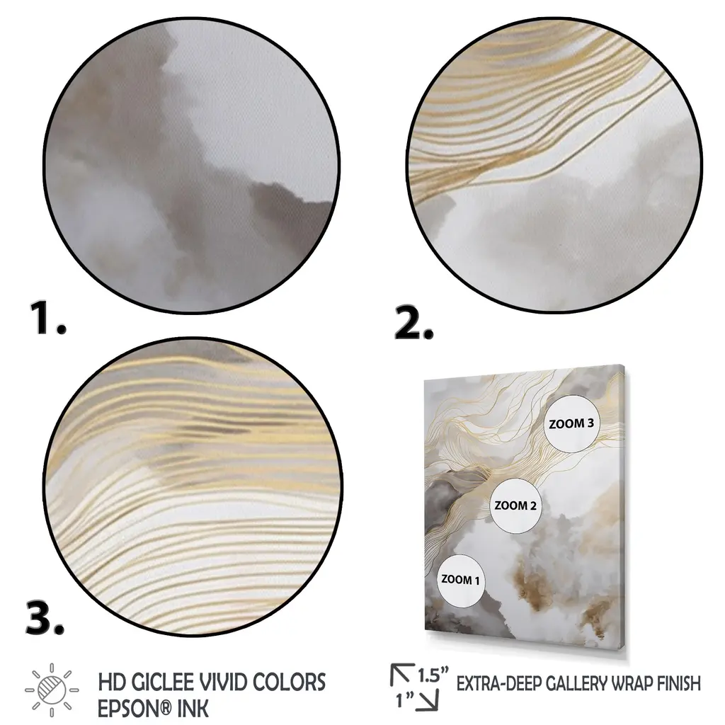 This beautiful Gold And Grey Abstracted Line Artistry V Canvas Art is printed using the highest quality fade resistant ink on canvas. Every one of our fine art giclee canvas prints is printed on premium quality cotton canvas, using the finest quality inks which will not fade over time. Each giclee print is stretched tightly over a 1 inch wood sub frame for small size prints or a 1.5 inch wood sub frame for large size prints (40x30 60x28 ...) ensuring the canvas is taught and does not buckle. This canvas art print is gallery-wrapped (the design continues on the sides) , giving it a real art gallery feel. All of our canvas prints are carefully packaged with plastic protection, fragile labeling and sturdy boxes to ensure a safe delivery. Every canvas print arrives ready to hang on the wall, with the hanging kits included. - Style : Modern & Contemporary, Transitional - Subject : Abstract - Color : Gold - This canvas giclee print is gallery-wrapped (the design continues on the sides) , giving it a real art gallery feel. - Premium quality cotton canvas. - Arrives ready to hang on the wall - Easy to Hang