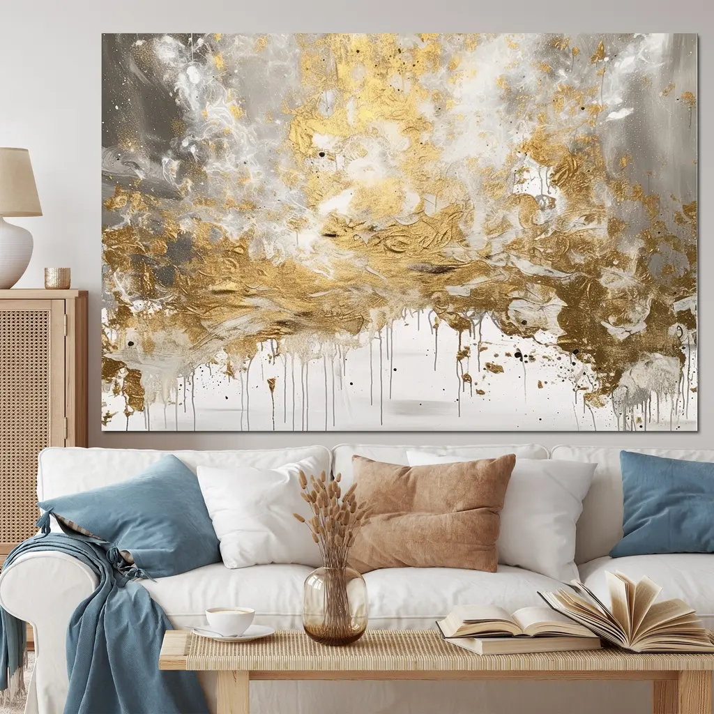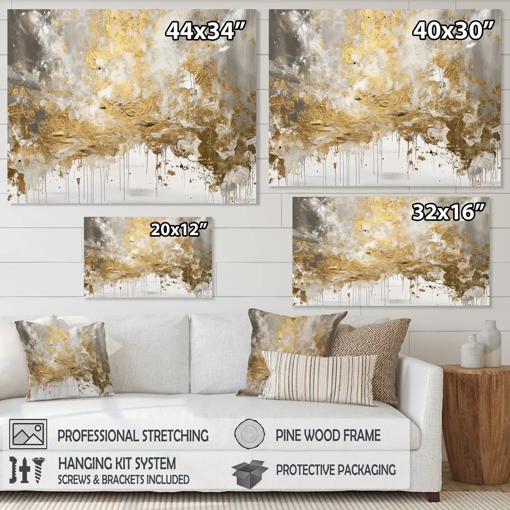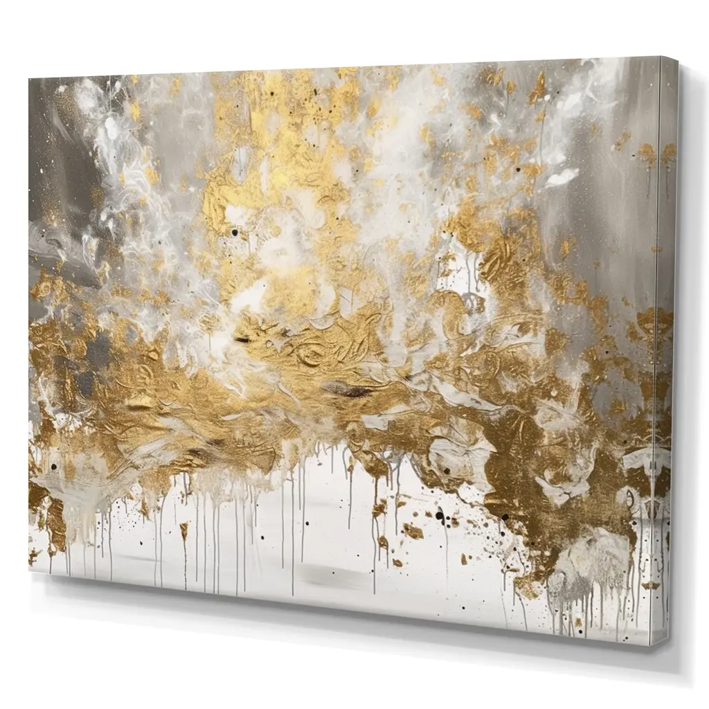 This beautiful Golden Abstract Canvas Art is printed using the highest quality fade resistant ink on canvas. Every one of our fine art giclee canvas prints is printed on premium quality cotton canvas, using the finest quality inks which will not fade over time. Each giclee print is stretched tightly over a 1 inch wood sub frame for small size prints or a 1.5 inch wood sub frame for large size prints (40x30 60x28 ...) ensuring the canvas is taught and does not buckle. This canvas art print is gallery-wrapped (the design continues on the sides) , giving it a real art gallery feel. All of our canvas prints are carefully packaged with plastic protection, fragile labeling and sturdy boxes to ensure a safe delivery. Every canvas print arrives ready to hang on the wall, with the hanging kits included. - Style : Modern & Contemporary - Subject : Abstract - Color : White, Gold - This canvas giclee print is gallery-wrapped (the design continues on the sides) , giving it a real art gallery feel. - Premium quality cotton canvas. - Arrives ready to hang on the wall - Easy to Hang