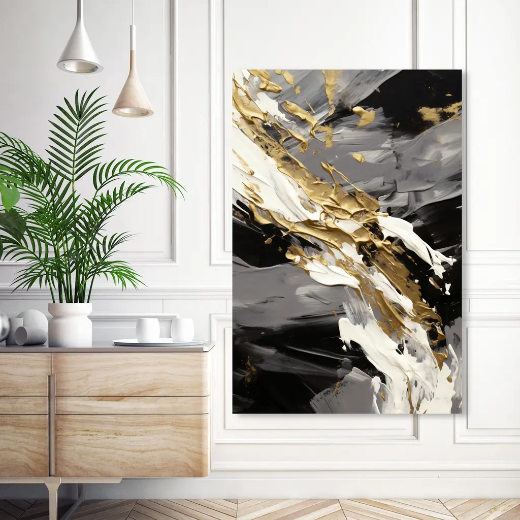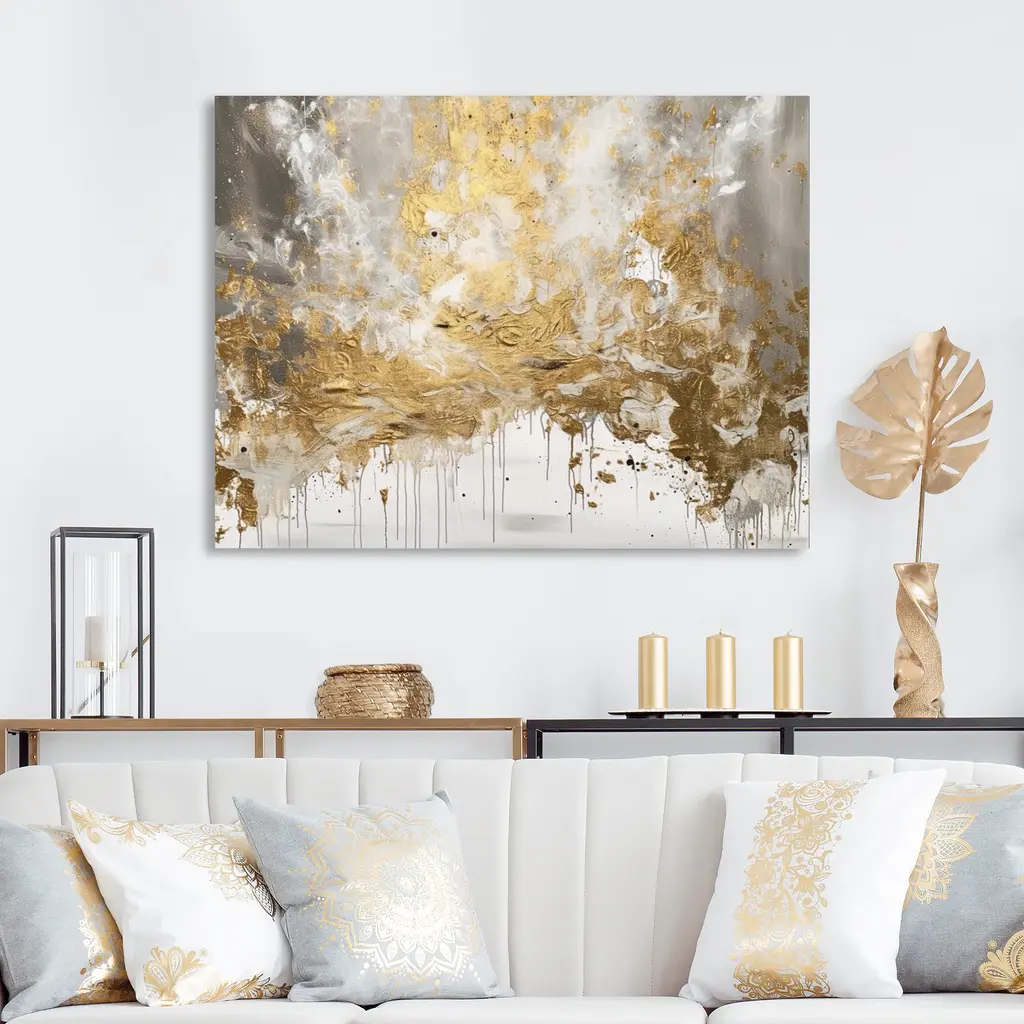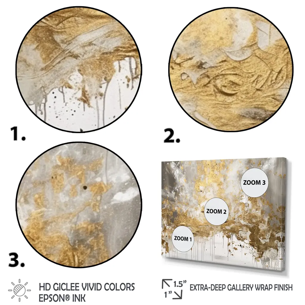 This beautiful Golden Abstract Canvas Art is printed using the highest quality fade resistant ink on canvas. Every one of our fine art giclee canvas prints is printed on premium quality cotton canvas, using the finest quality inks which will not fade over time. Each giclee print is stretched tightly over a 1 inch wood sub frame for small size prints or a 1.5 inch wood sub frame for large size prints (40x30 60x28 ...) ensuring the canvas is taught and does not buckle. This canvas art print is gallery-wrapped (the design continues on the sides) , giving it a real art gallery feel. All of our canvas prints are carefully packaged with plastic protection, fragile labeling and sturdy boxes to ensure a safe delivery. Every canvas print arrives ready to hang on the wall, with the hanging kits included. - Style : Modern & Contemporary - Subject : Abstract - Color : White, Gold - This canvas giclee print is gallery-wrapped (the design continues on the sides) , giving it a real art gallery feel. - Premium quality cotton canvas. - Arrives ready to hang on the wall - Easy to Hang