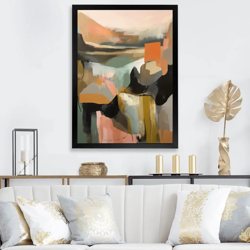Designart "Green And Beige Transcending Reality Ii" Abstract Painting Framed Canvas Art Print - 24 In. Wide X 32 In. High - Black