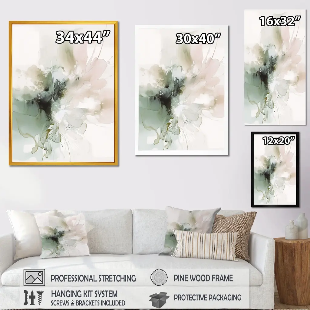 Designart "Green And Cream Essence Of Modernity I" Abstract Canvas Art Print - 16 In. Wide X 32 In. High