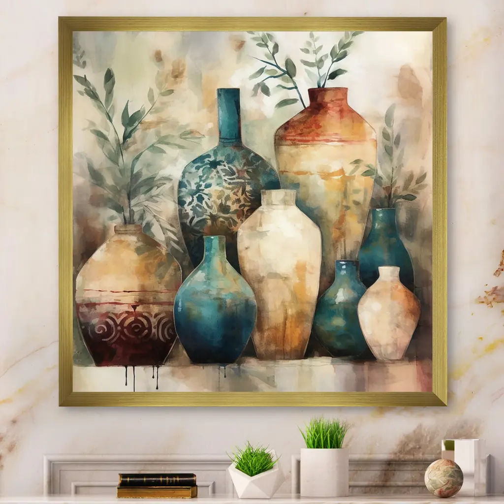 Designart "Green And Orange Artisanal Boho Pottery I" Boho Pottery Framed Wall Decor - 30 In. Wide X 30 In. High - Black